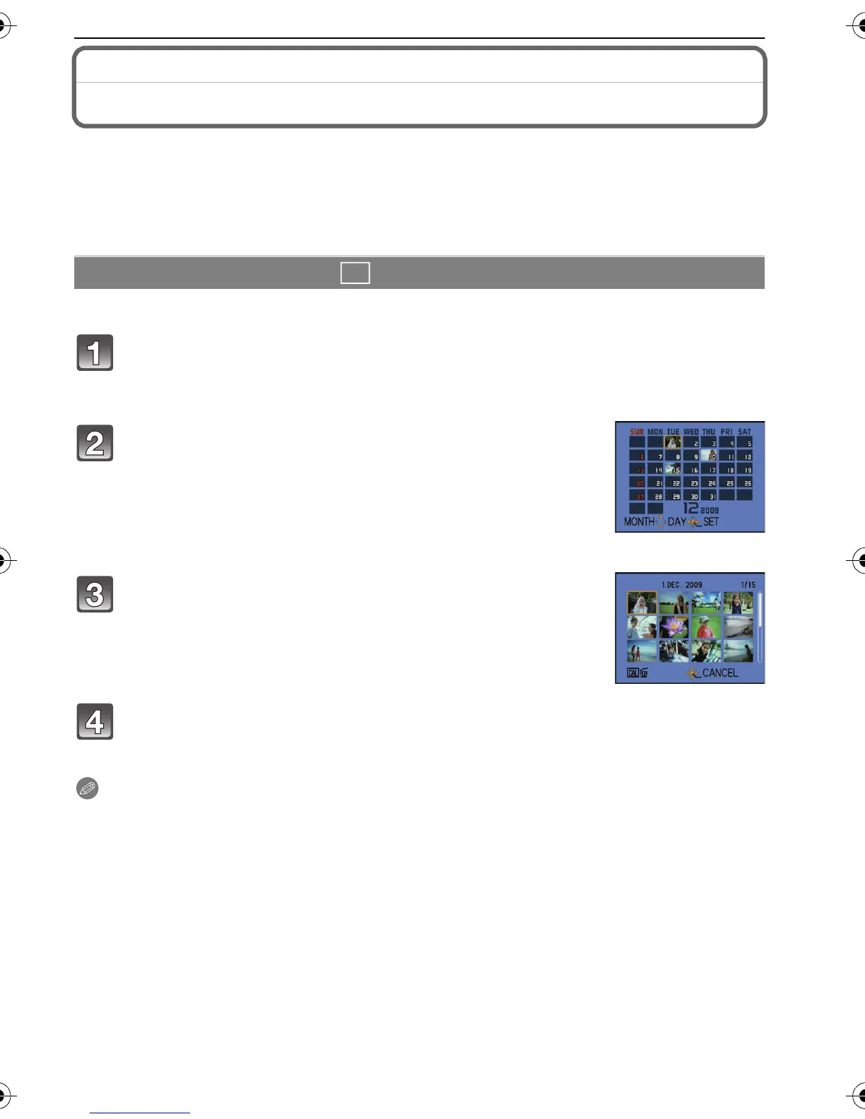 Select [CALENDAR] on the [PLAYBACK] mode menu. (P20)