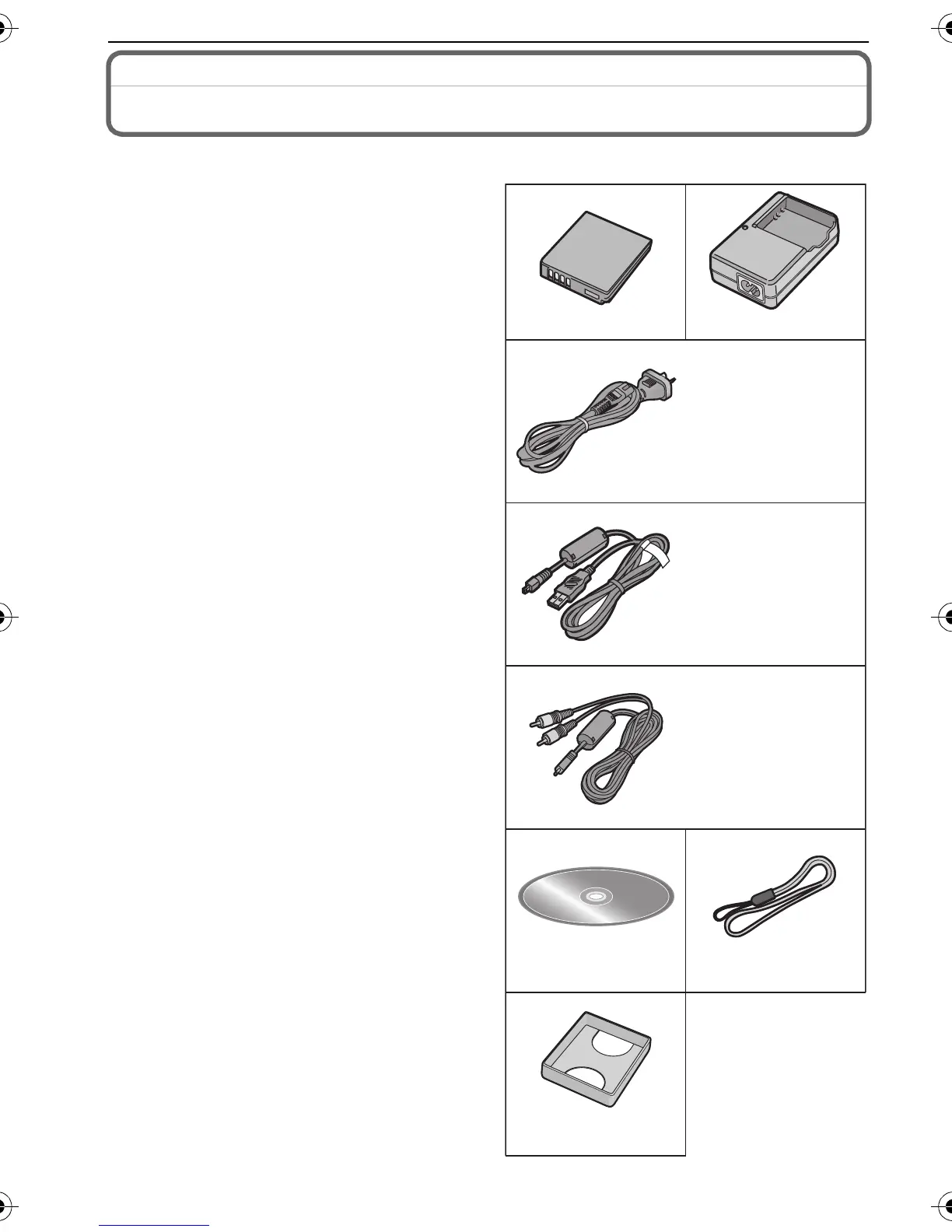 Check that all the accessories are included before using the camera.