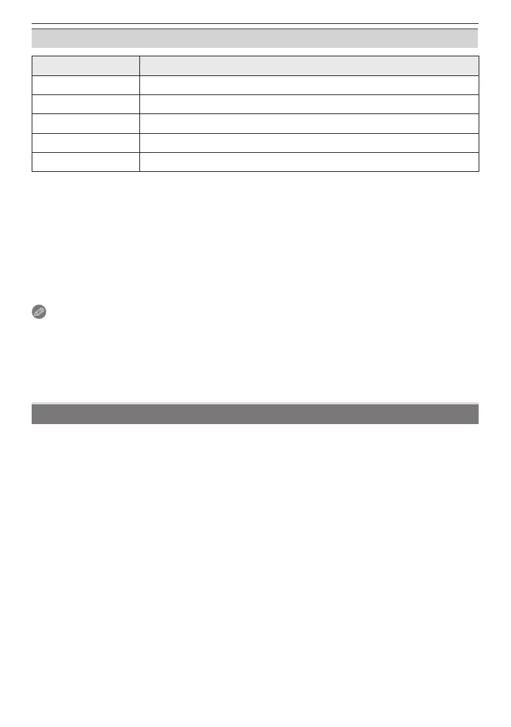 Item Description of settings