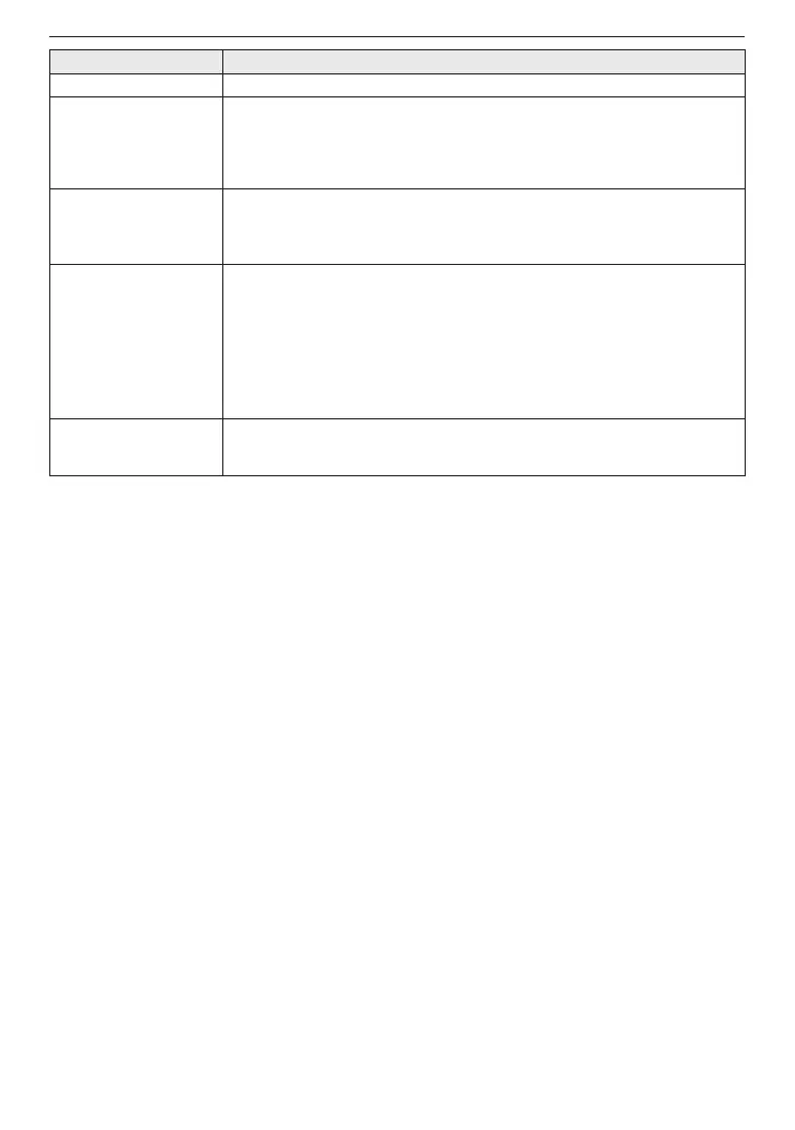 Item Description of settings