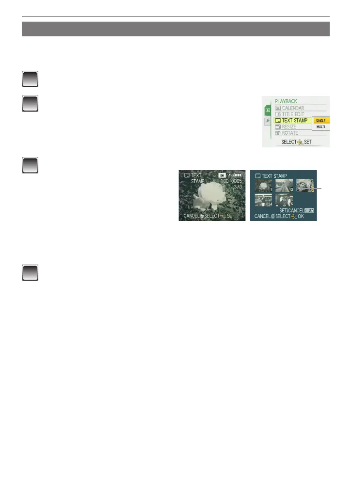 Select [TEXT STAMP] on the [PLAYBACK] menu. (P21)