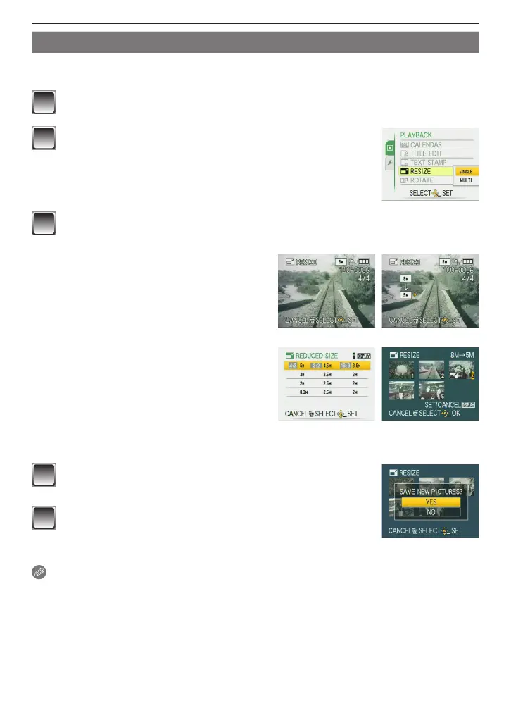 Select [RESIZE] on the [PLAYBACK] menu. (P21)