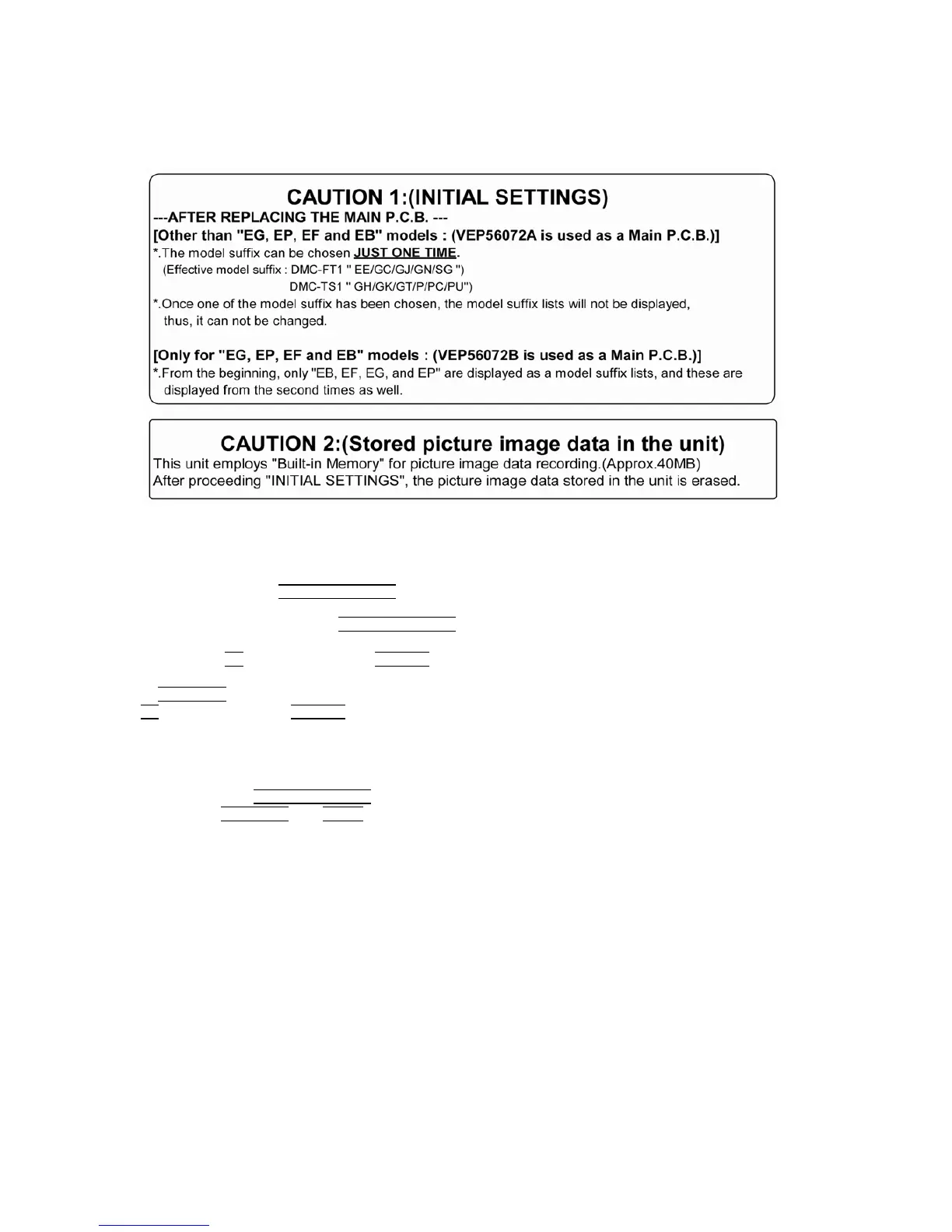When MAIN P.C.B. has just been replaced, all of the model suffix are displayed as follows. (Four pages in total)