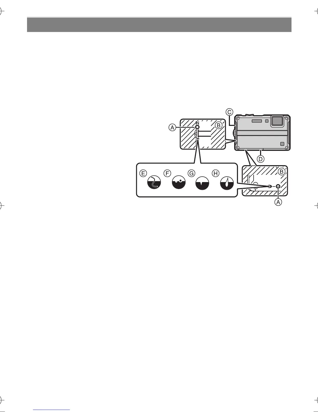 the camera and the card/battery door or terminal cover, causing water to leak