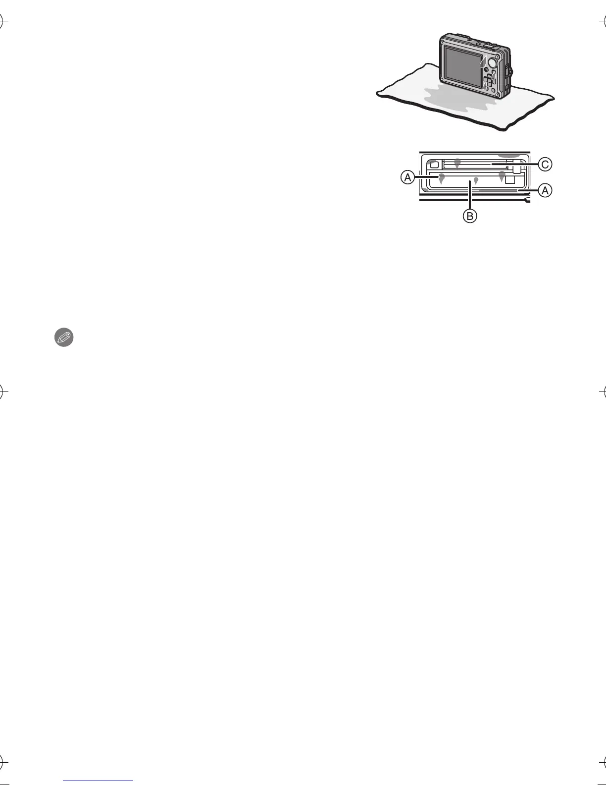 • After use at the seaside or under water, make sure that the card/battery door