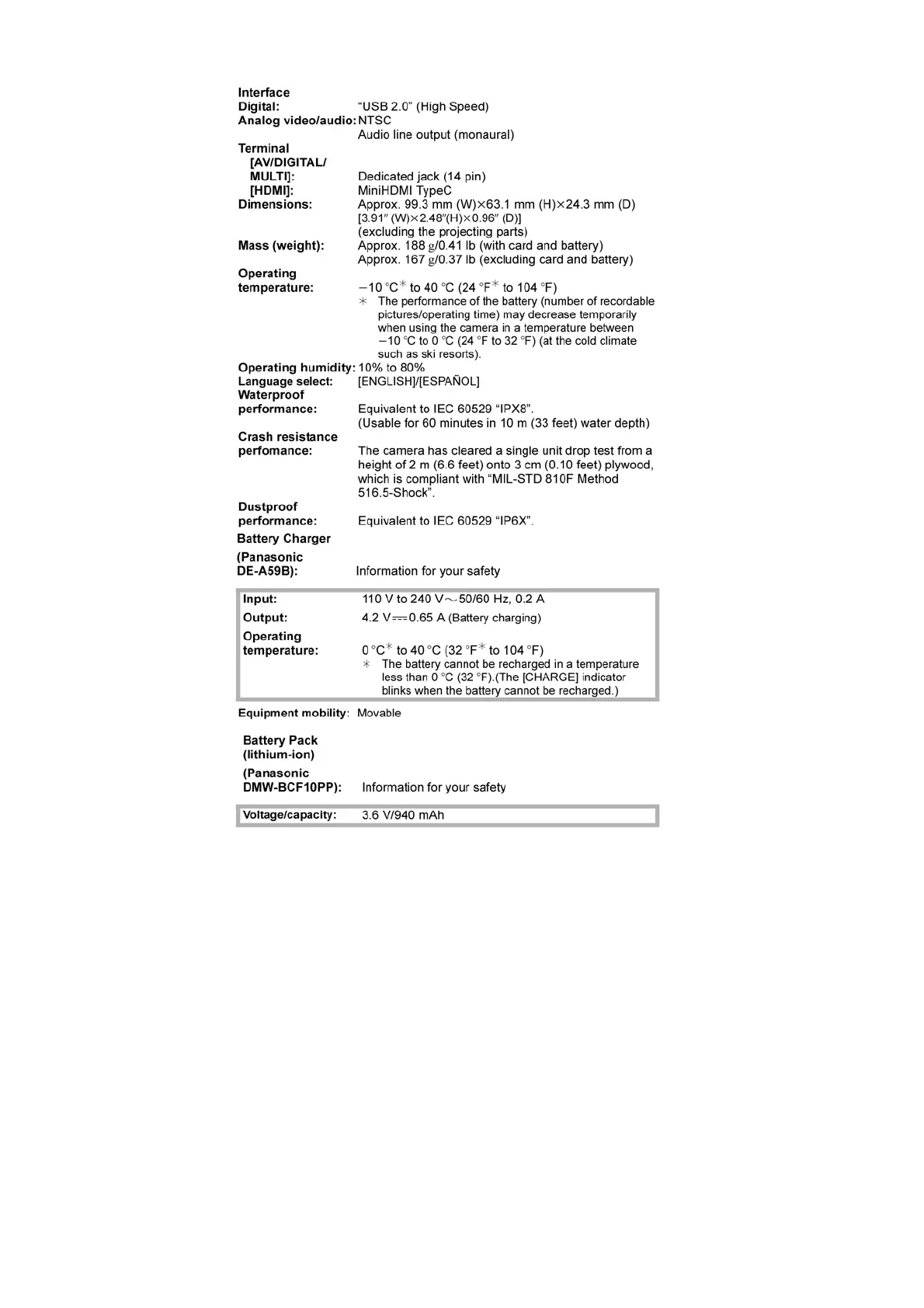 *Above specification is for DMC-TS2P. Some of the specification may differ depends on model suffix.