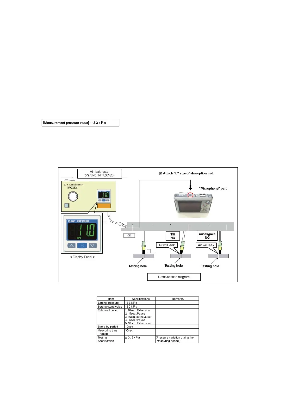 2. Set the following measurement pressure value on the air-leak tester. (Part No.:RFKZ0528).