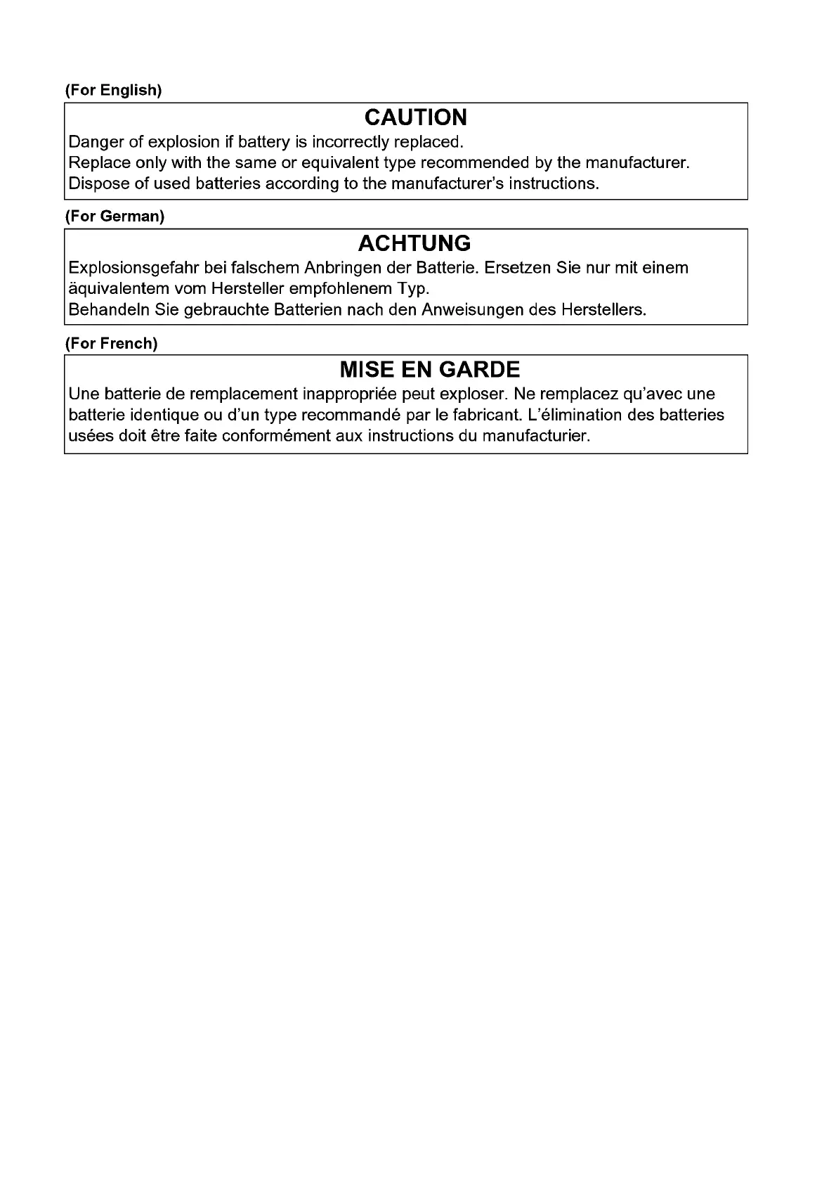 Danger of explosion if battery is incorrectly replaced.