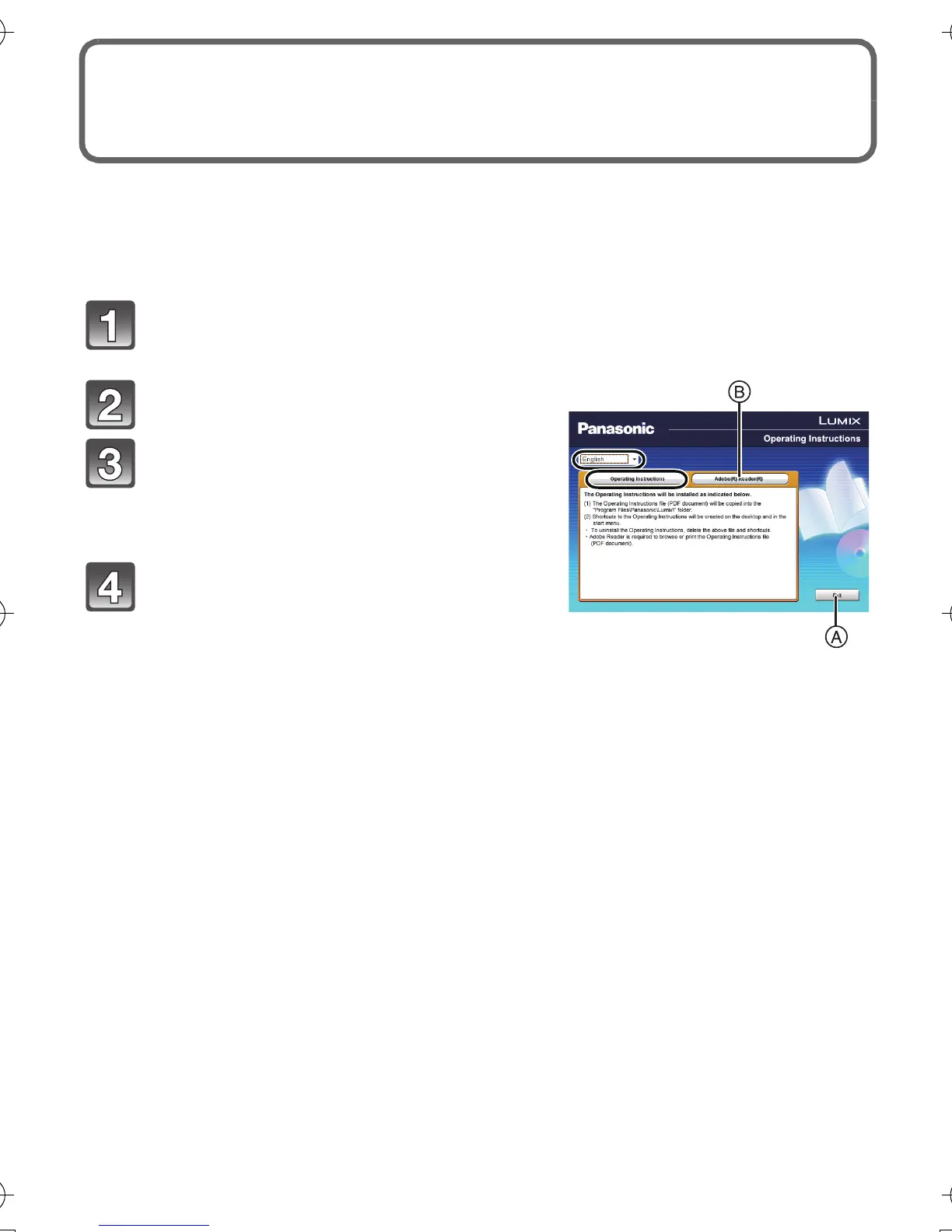 Insert the CD-ROM containing the Operating Instructions (supplied), click B and then