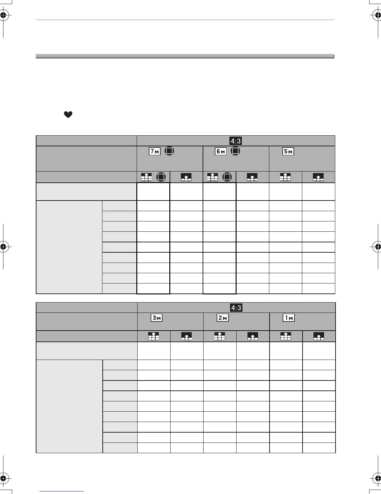 • The numbers inside the thick black lines are the number of recordable pictures in simple