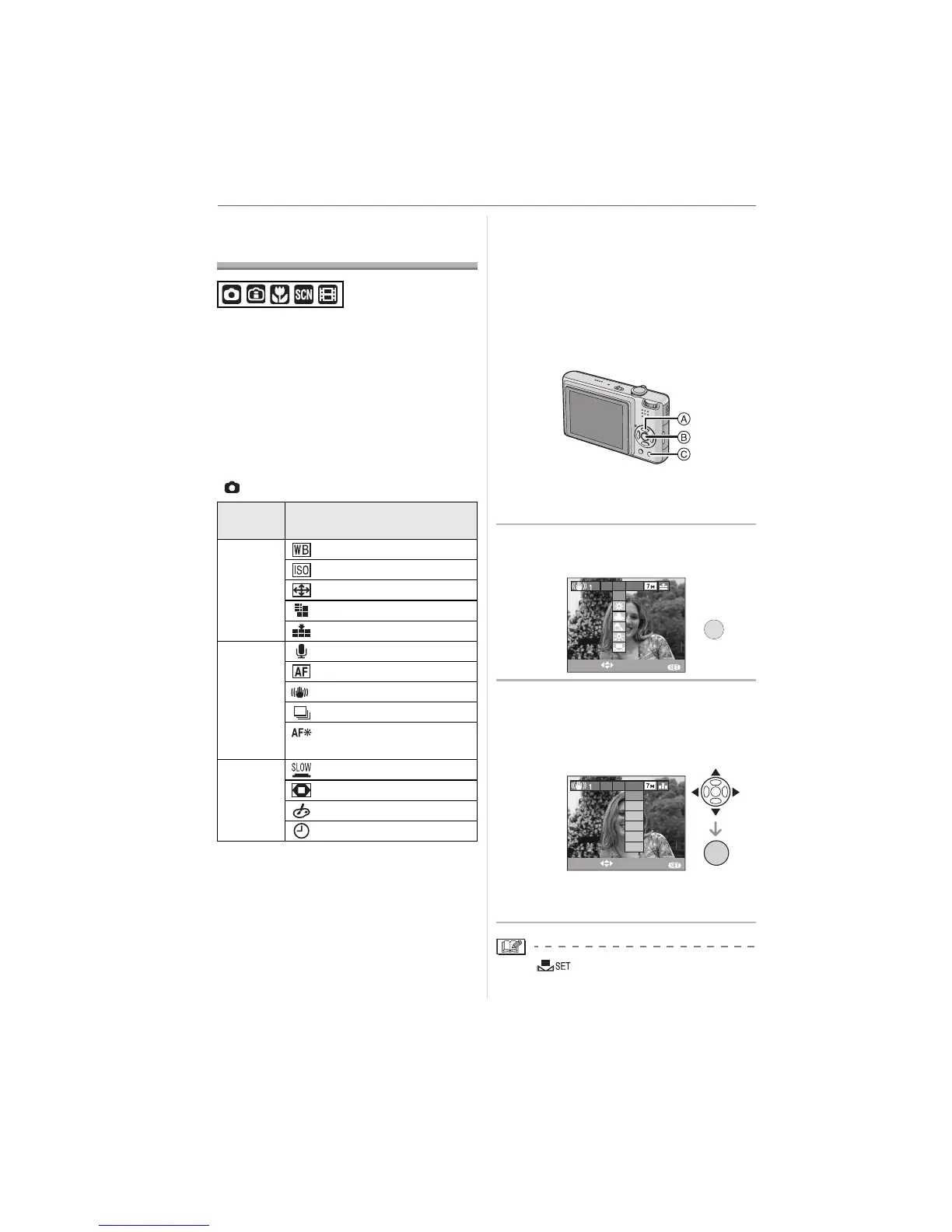 mode etc. The menu items that can be set