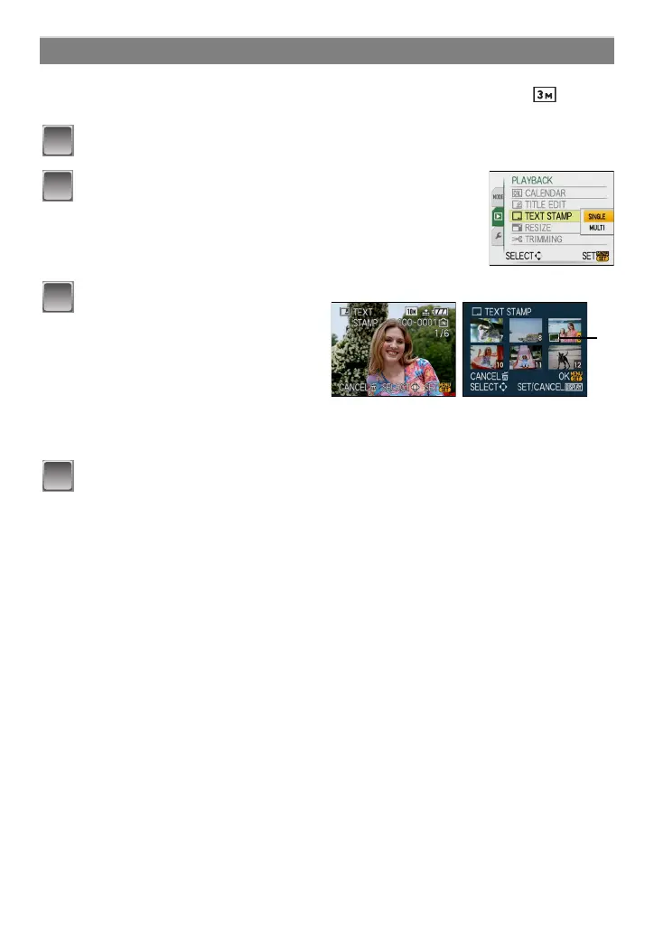 Select [TEXT STAMP] on the [PLAYBACK] mode menu. (P24)