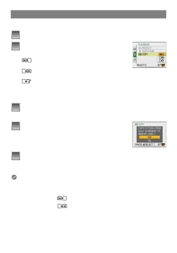 • If you copy from the built-in memory to a card, all the pictures are copied and then the