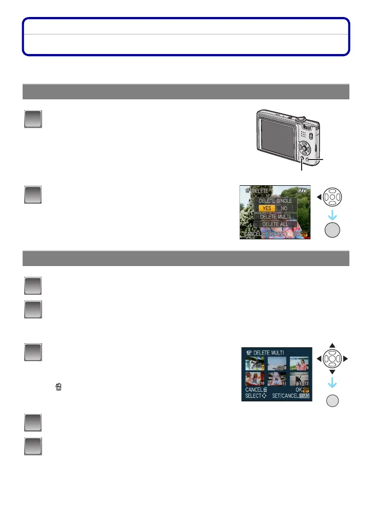 Pictures on the built-in memory or the card, which is being played back will be deleted.