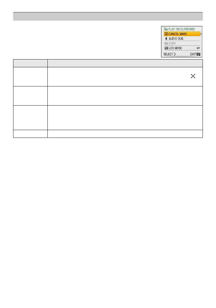 When [MENU/SET] is pressed during clipboard playback, the menu