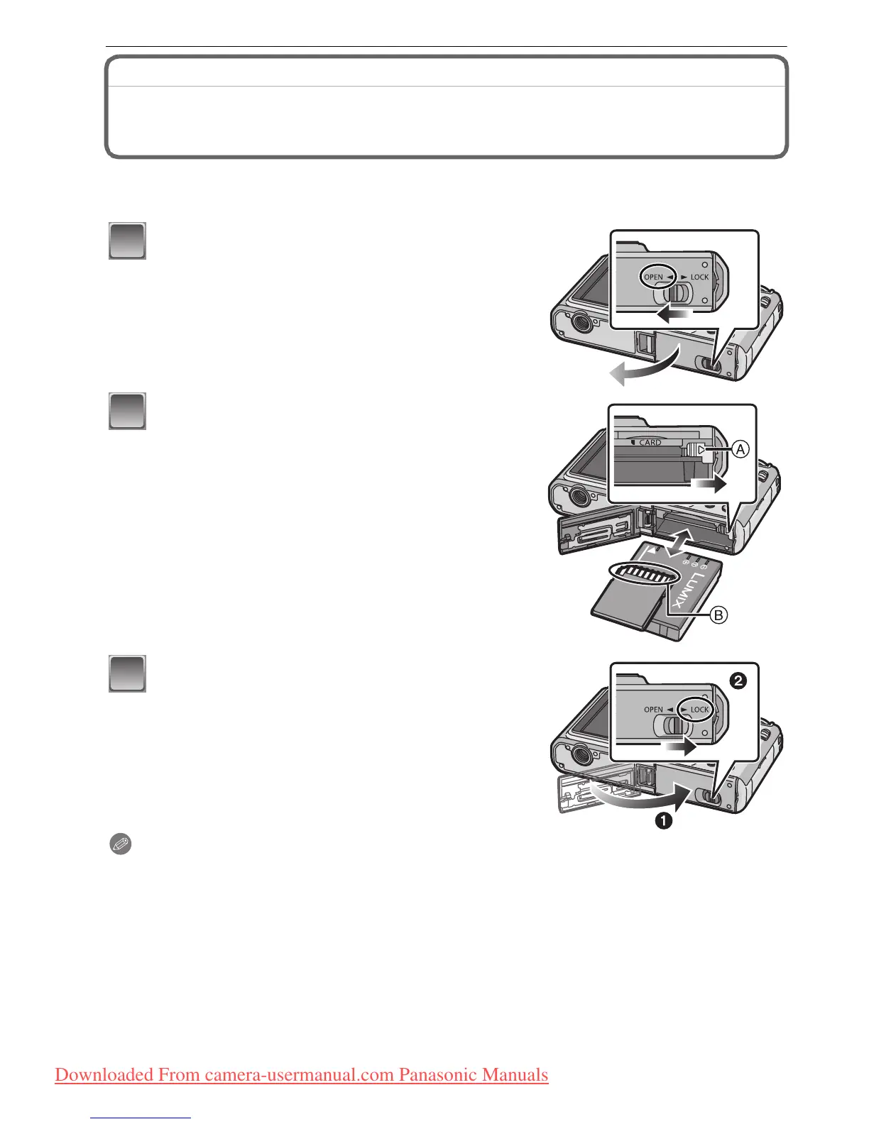 • Before removing the card or battery, turn the camera off, and wait until the status indicator has
