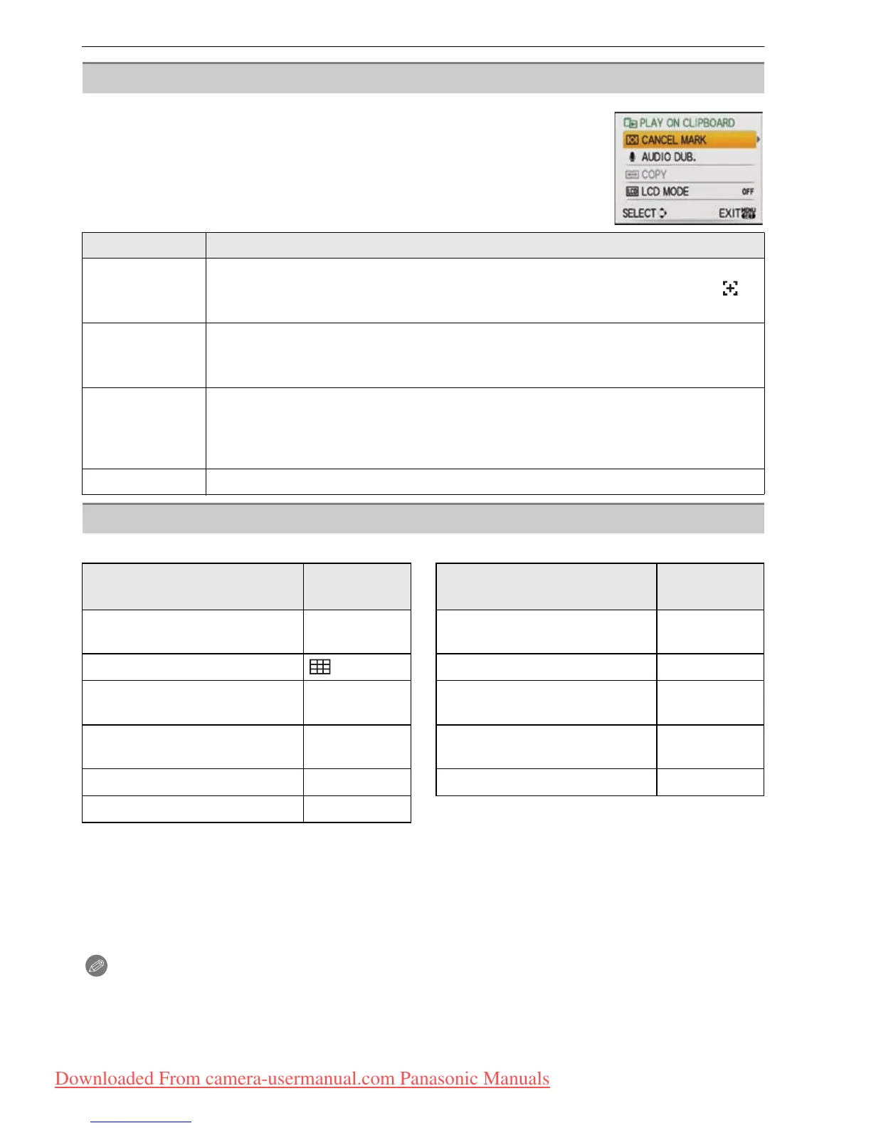 When [MENU/SET] is pressed during clipboard playback, the menu