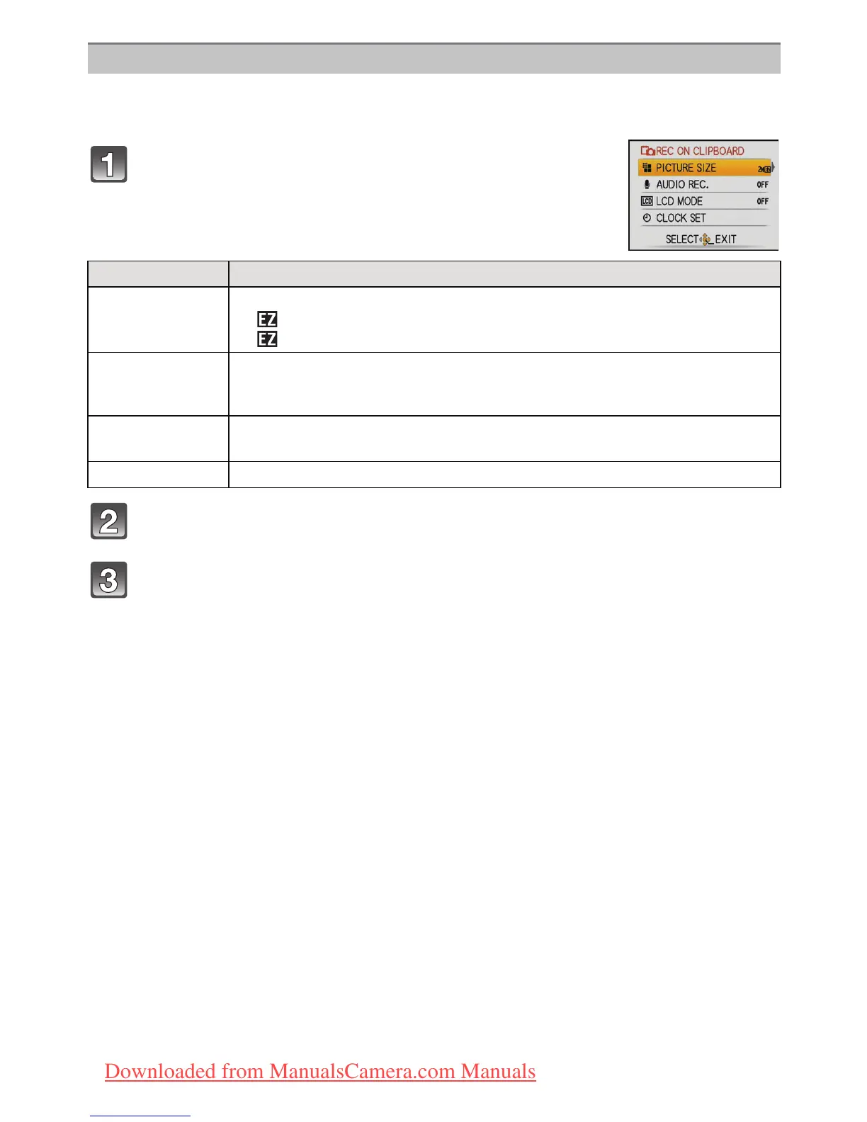 The menu screen appears when [MENU/SET] is pressed during clipboard picture