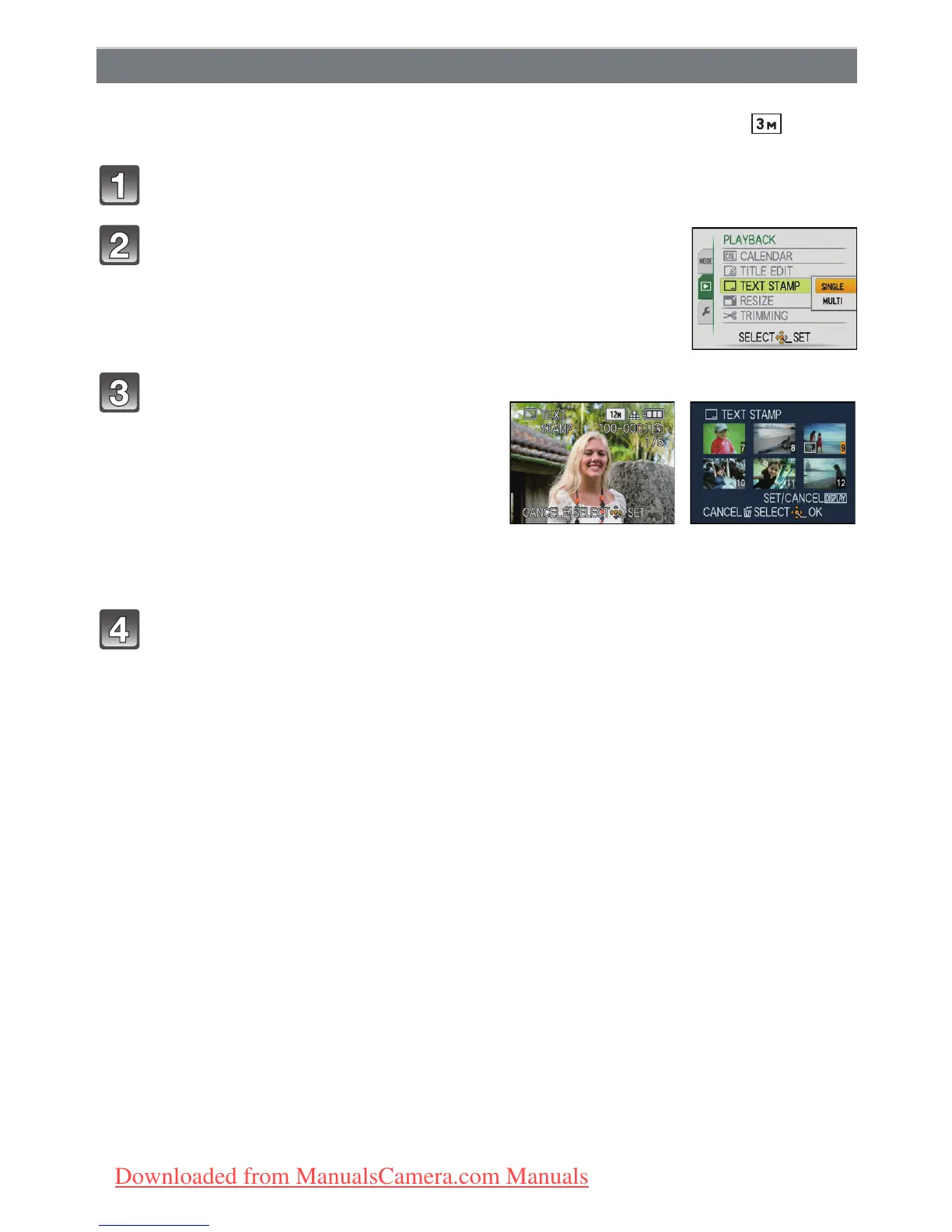 Select [TEXT STAMP] on the [PLAYBACK] Mode menu. (P21)