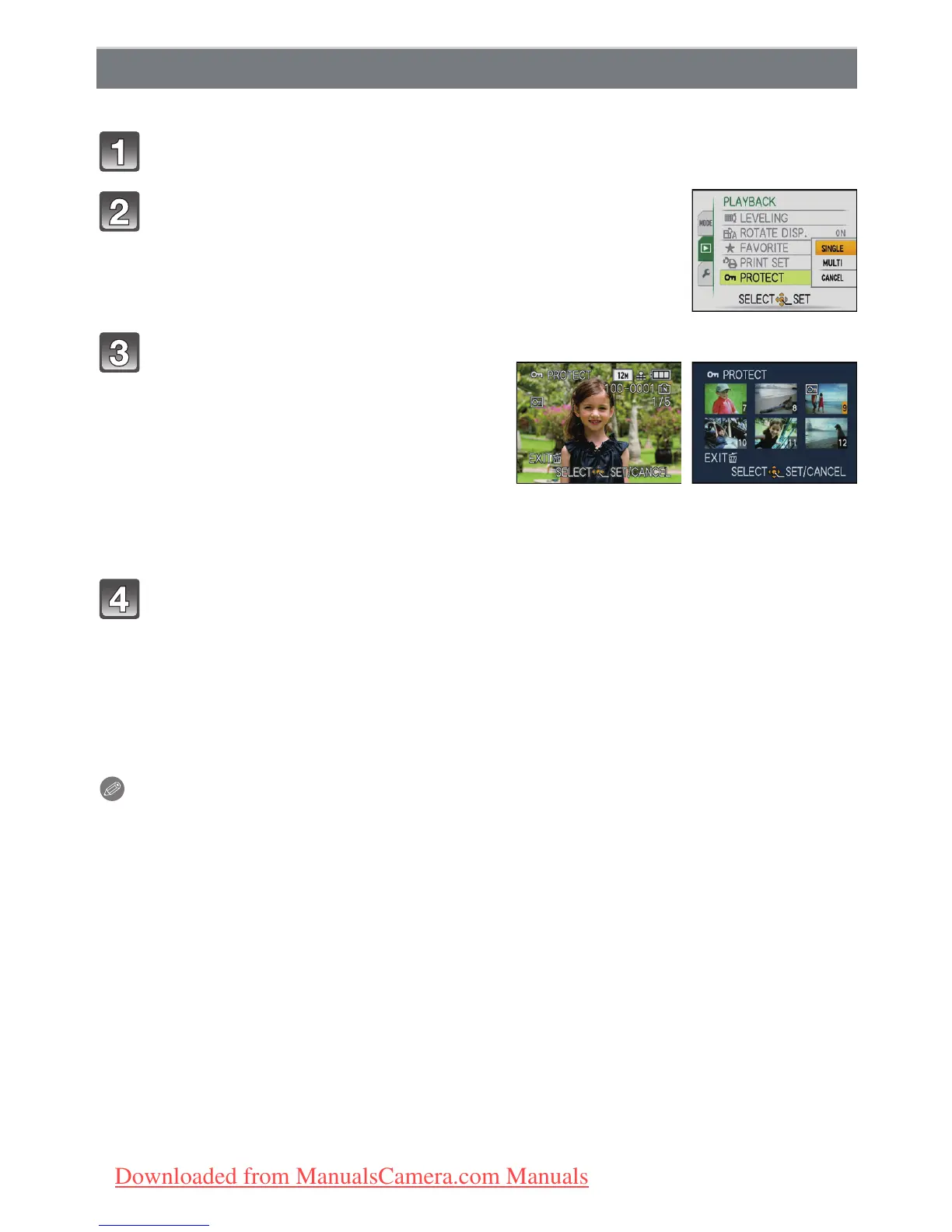Select [PROTECT] on the [PLAYBACK] Mode menu. (P21)
