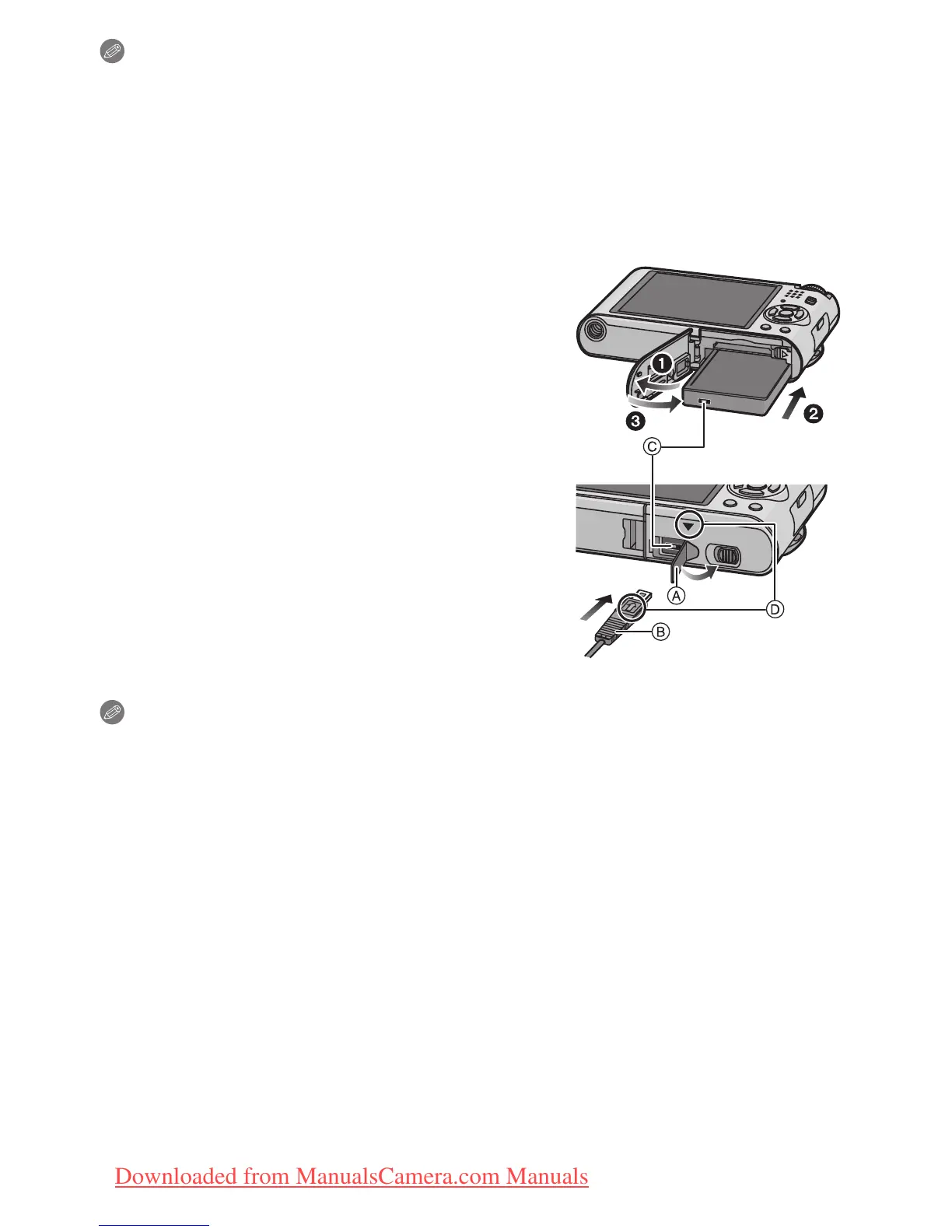 • Make sure to unplug the AC adaptor when you open the card/battery door.