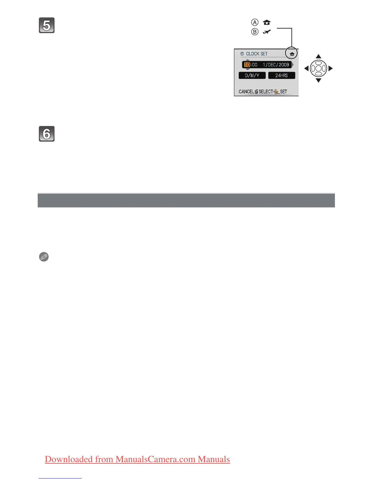 • After completing the clock settings, turn the camera off. Then turn the camera back on,