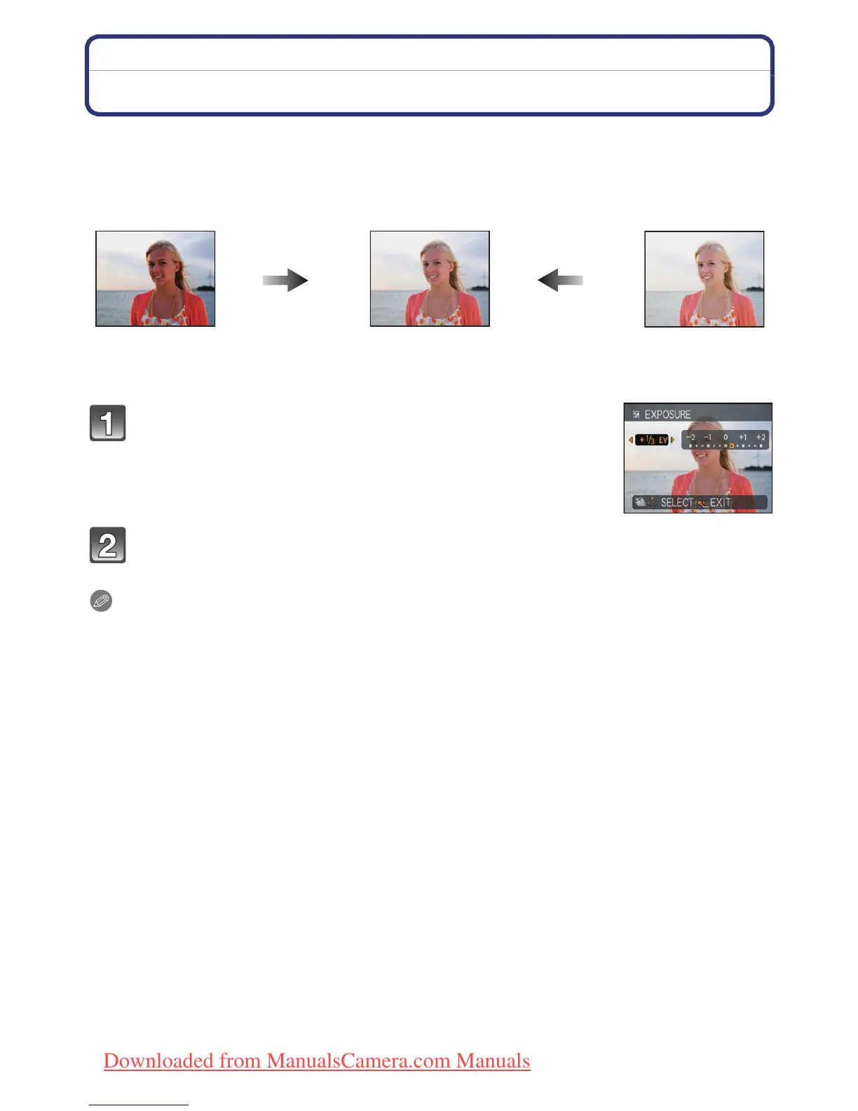 • The set exposure value is memorised even if the camera is turned off.