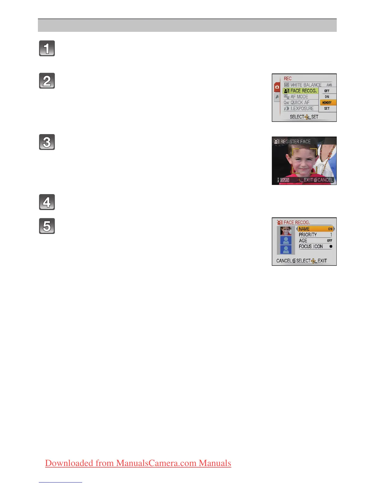 Select [FACE RECOG.] on the [REC] Mode menu and then press 1.