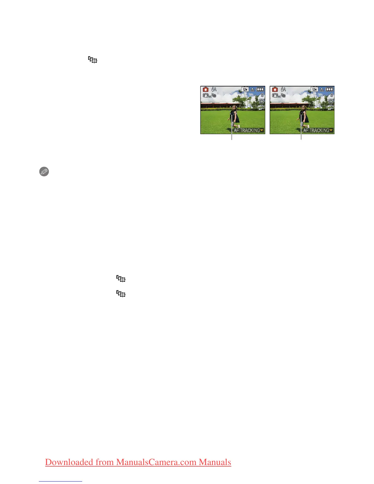 • AF Tracking will not operate when the subject is not specified, the subject is lost, or has failed