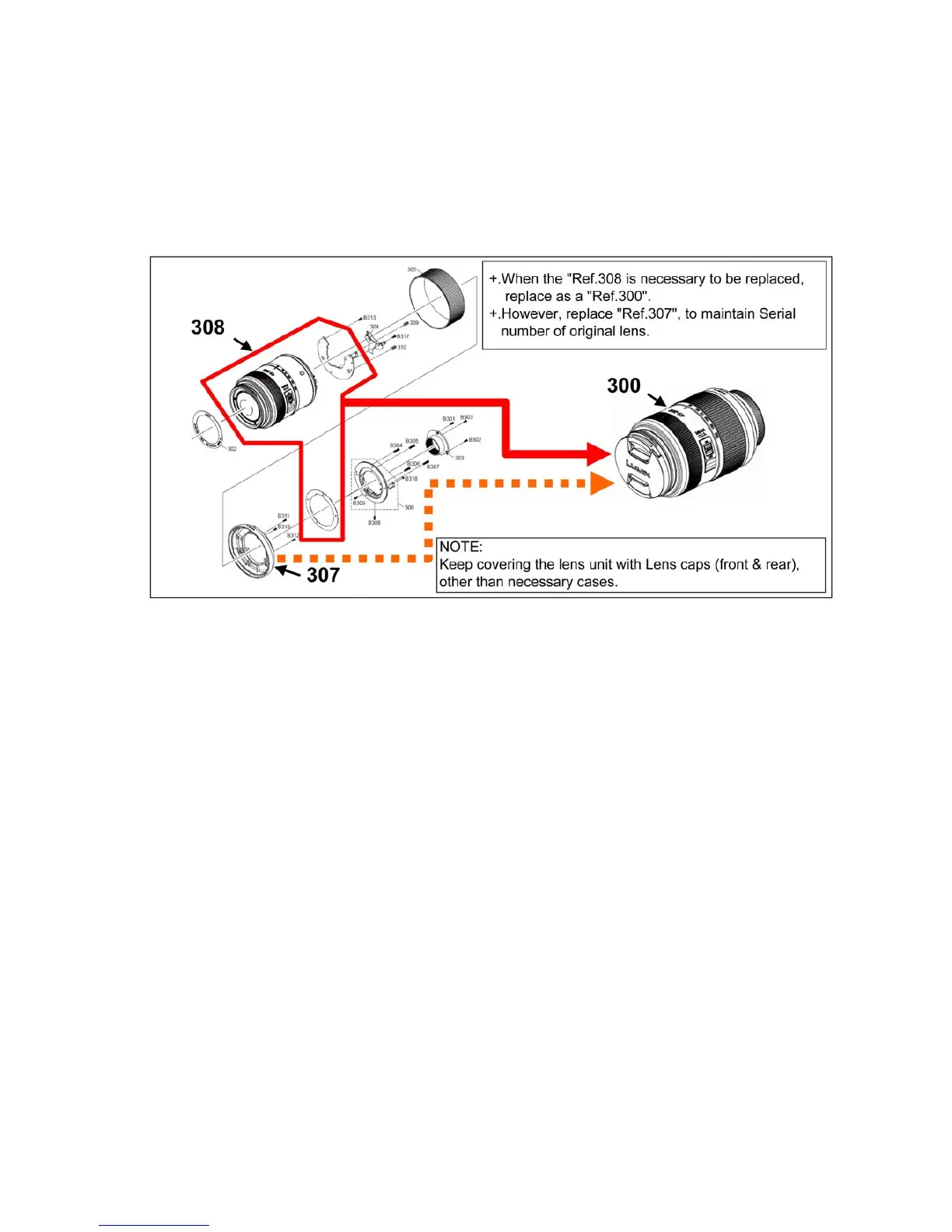 FRAME UNIT (Ref. 307), to maintain Serial number of owner's original lens.