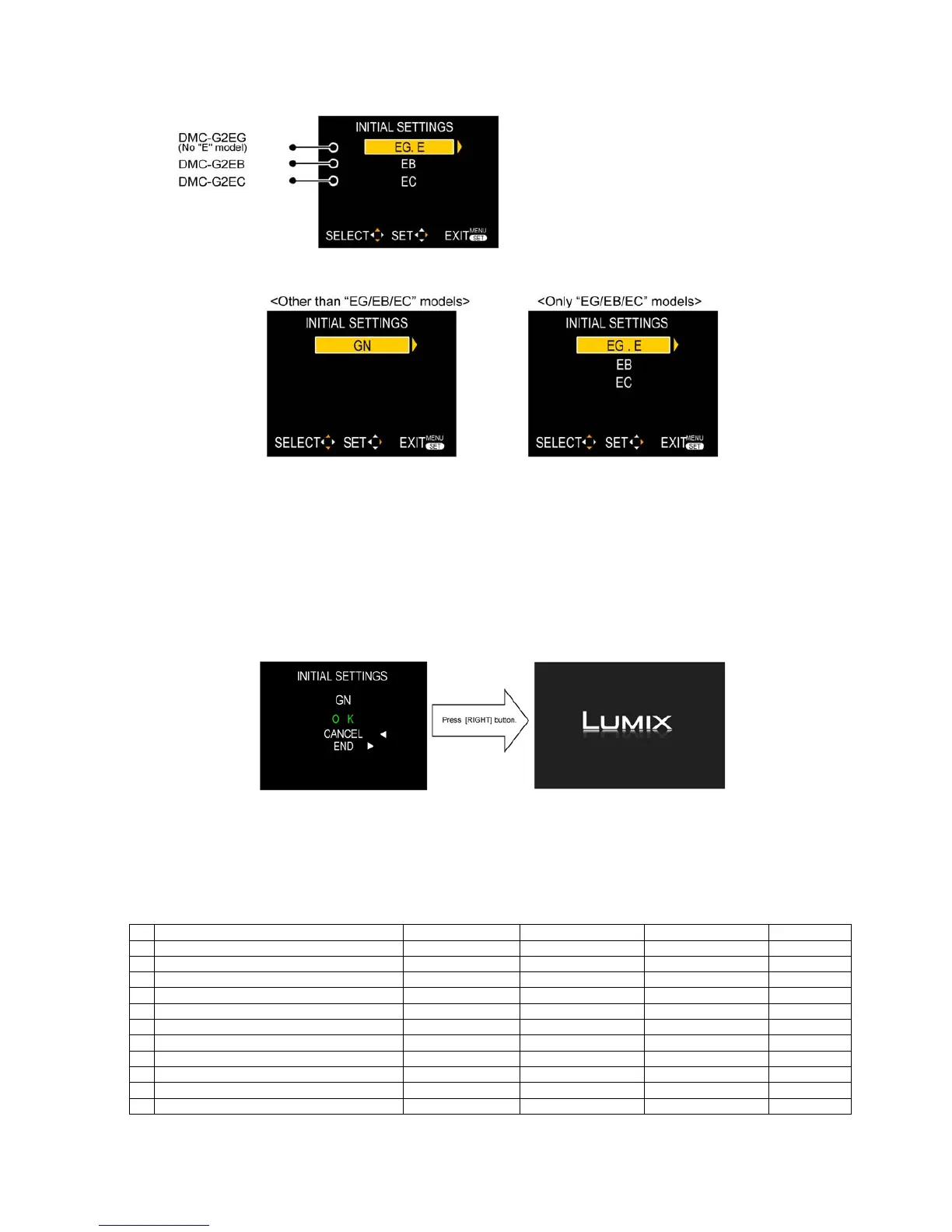 When MAIN P.C.B. and/or Flash-ROM (IC6007) has just been replaced, only 4 model suffix are displayed as follows.