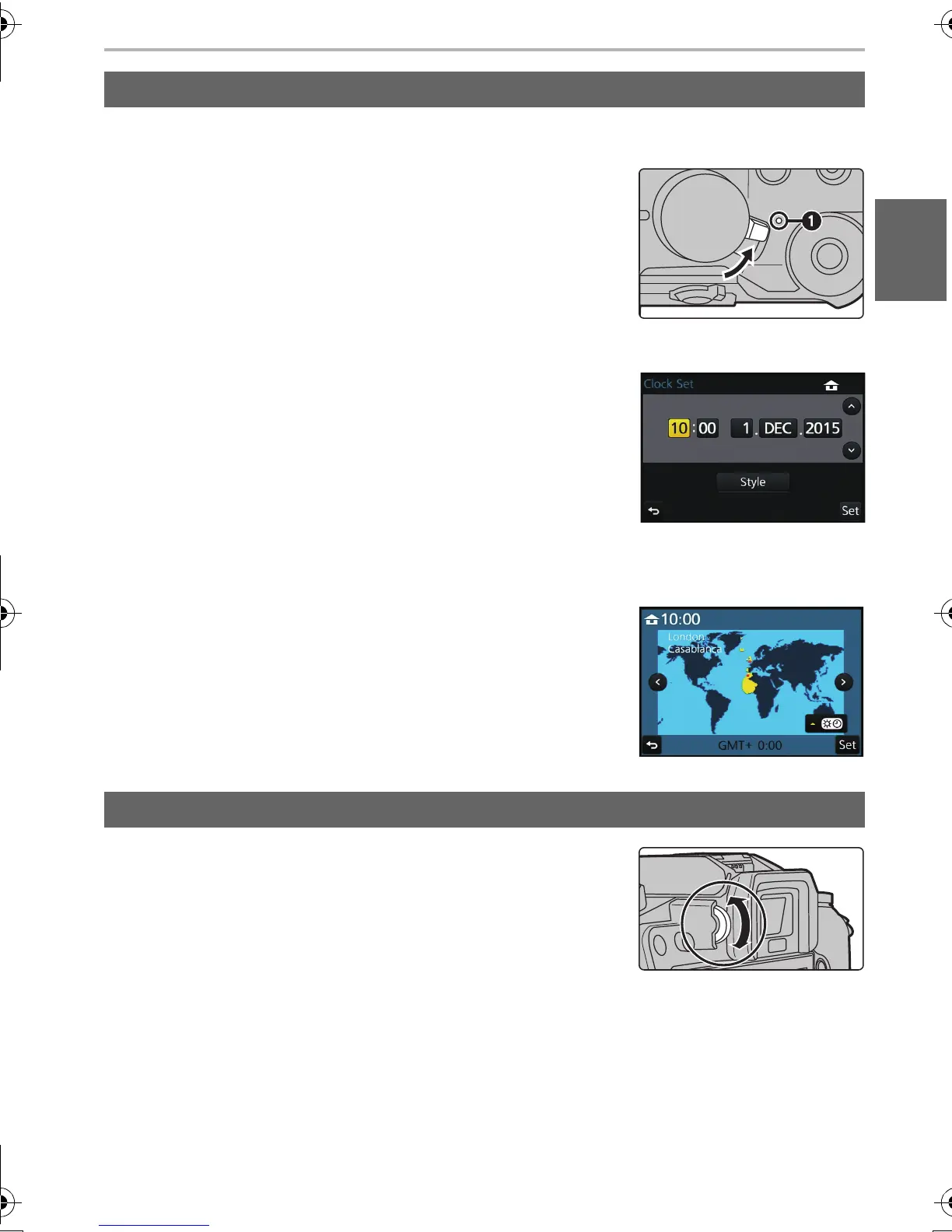 • The clock is not set when the camera is shipped.