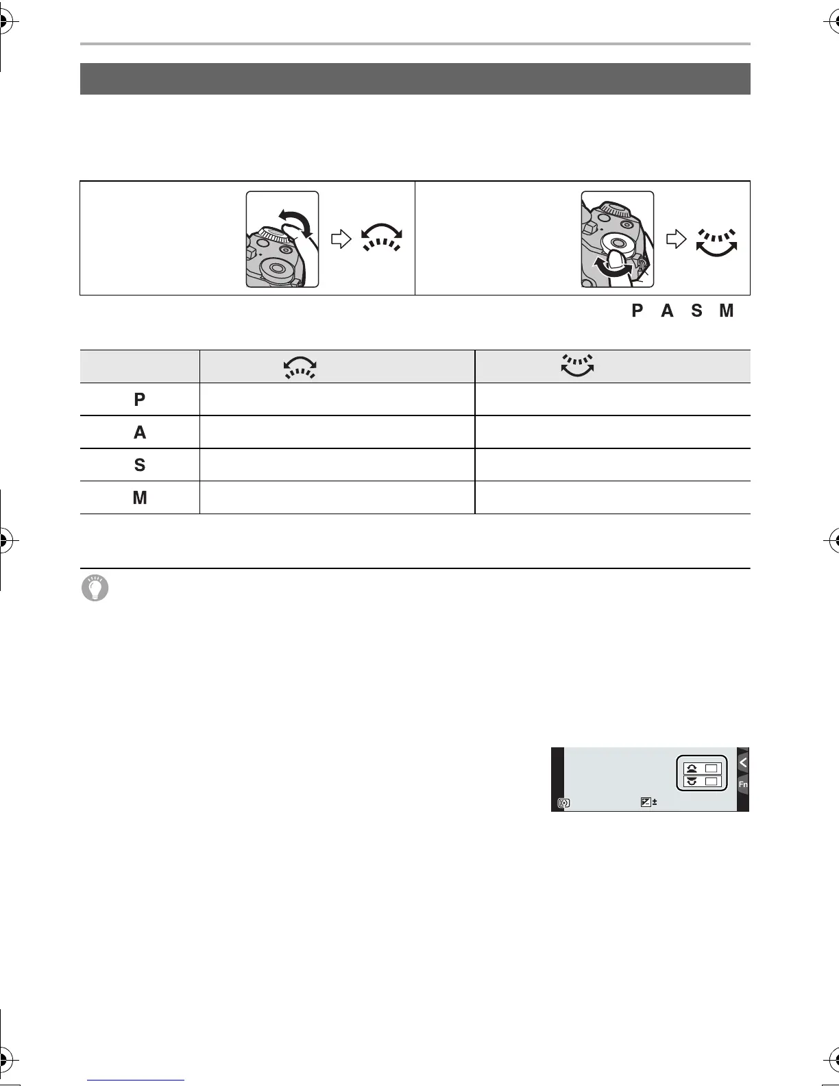 These operating instructions describe operations of the front dial/rear dial as follows: