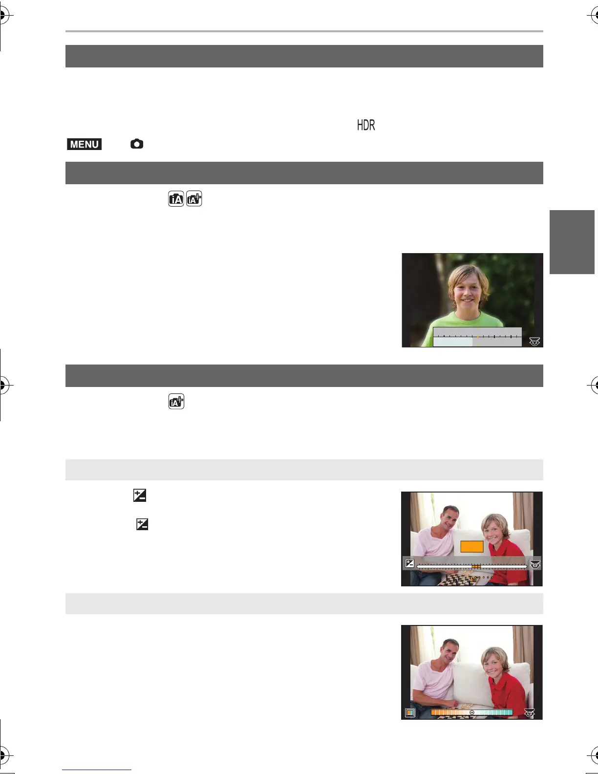 > [Rec] > [iHDR] > [ON]/[OFF]