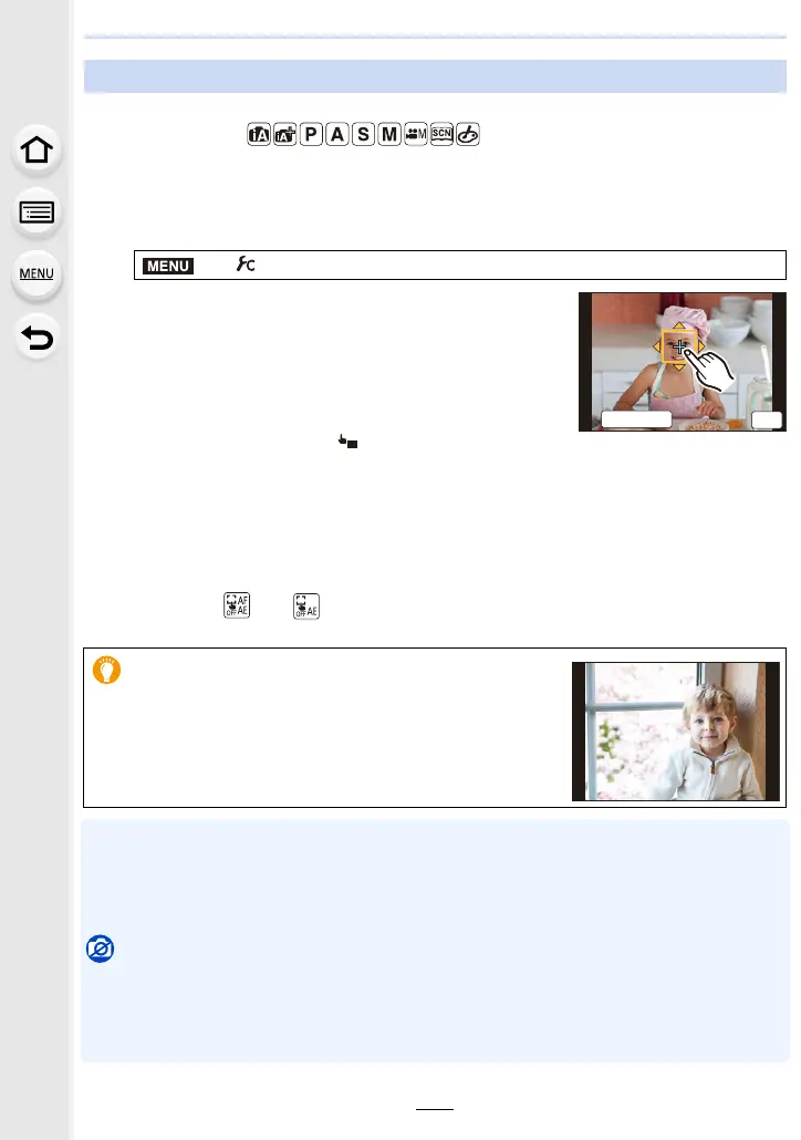 • At the edge of the screen, the metering may be affected by the brightness around the touched