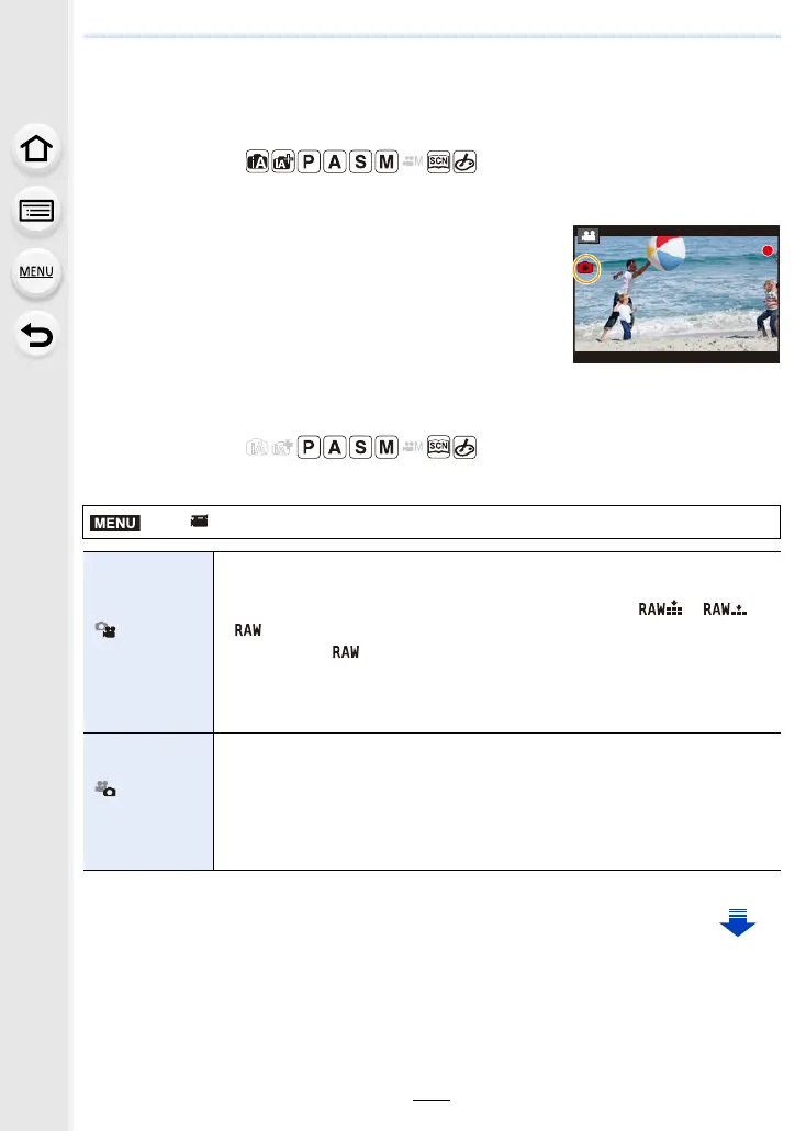 You can record still pictures while recording a motion picture. (Simultaneous recording)