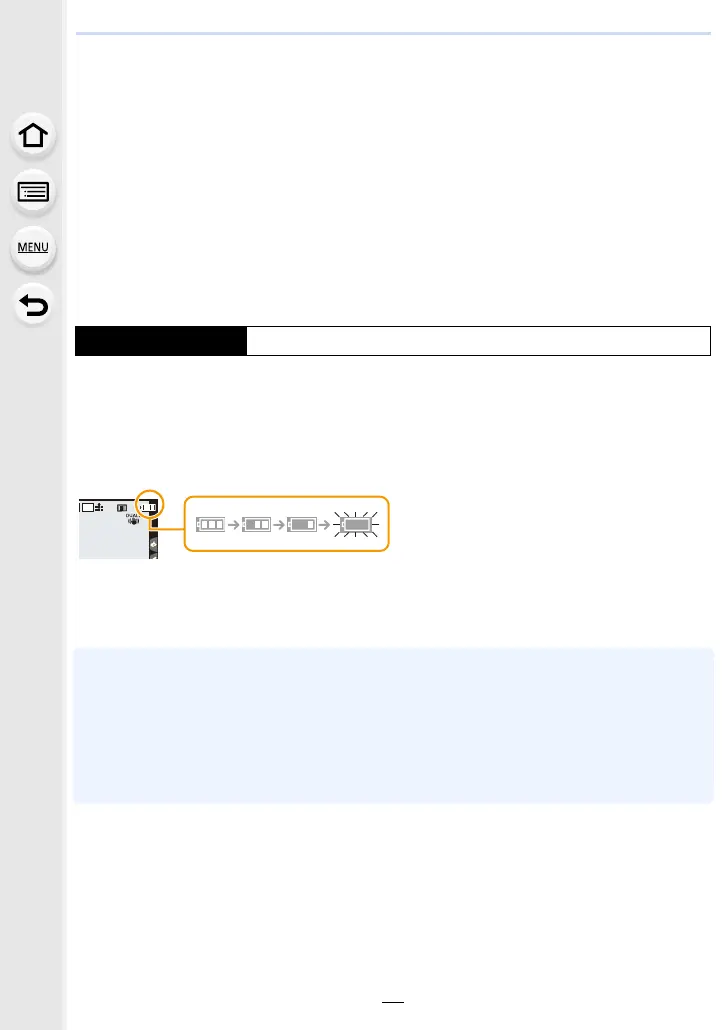 The indication turns red and blinks if the remaining battery power is exhausted.