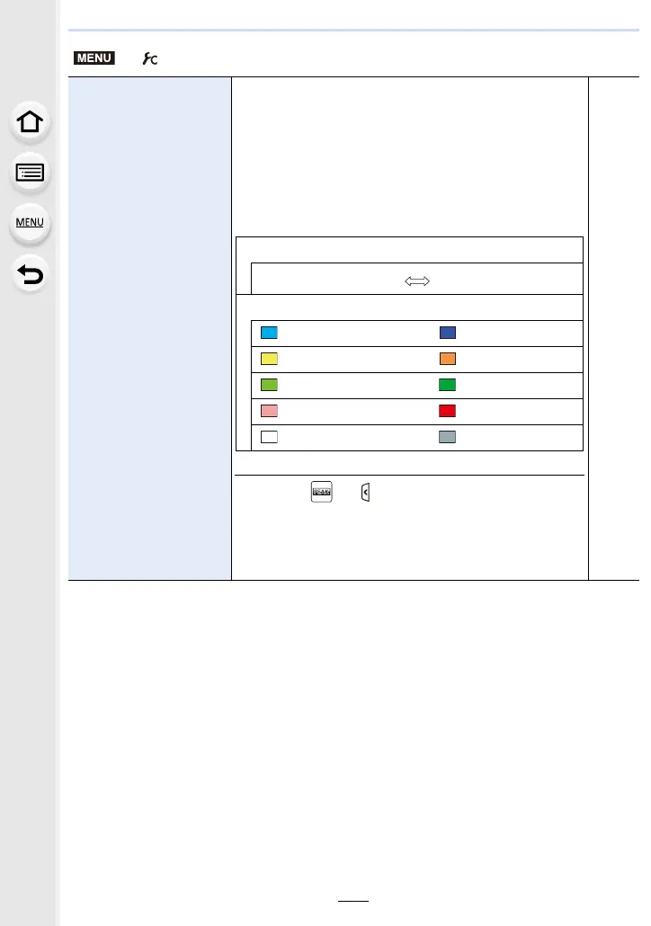 • Each time [ ] in [ ] is touched, the setting is switched