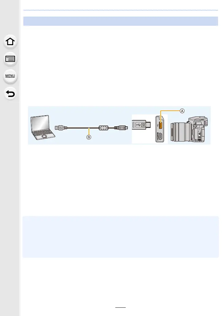 • If [USB Mode] (P223) is set to [PC] in the [Setup] menu in advance, the camera will be
