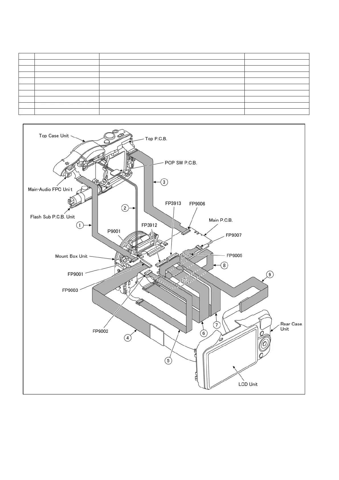2. Be careful of the high voltage circuit on FLASH SUB P.C.B. UNIT.