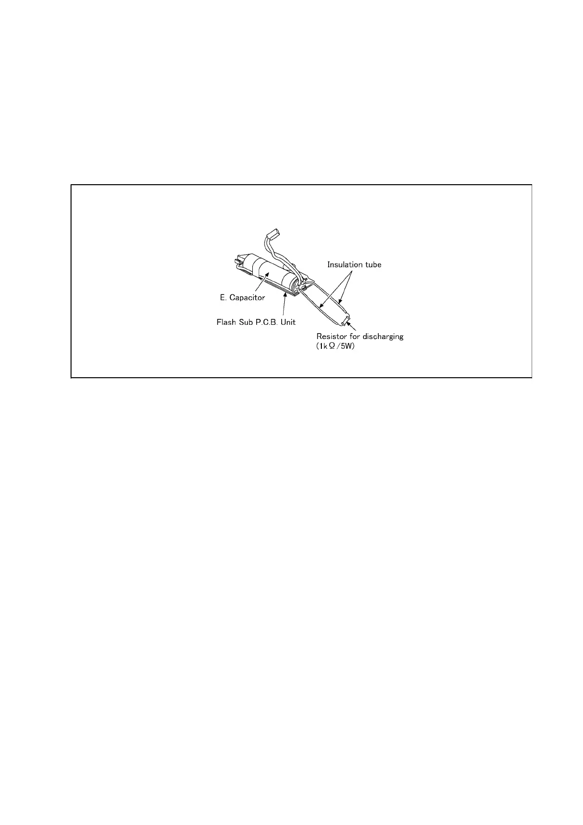 3. Put the resistor between both terminals of E. Capacitor on FLASH SUB P.C.B. UNIT for approx. 5 seconds.
