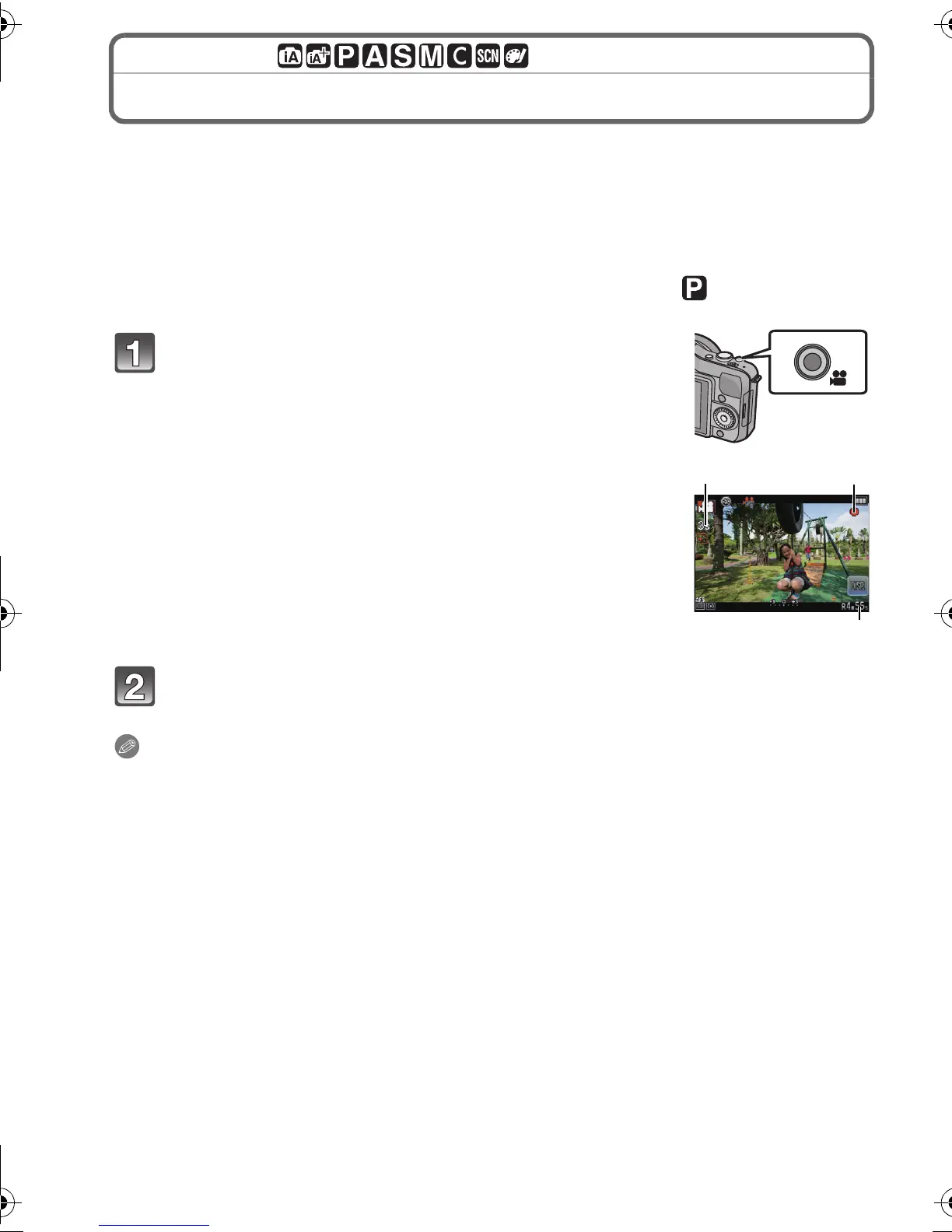 • Screen here is an example of when the Recording Mode is set to [ ] (Programme AE