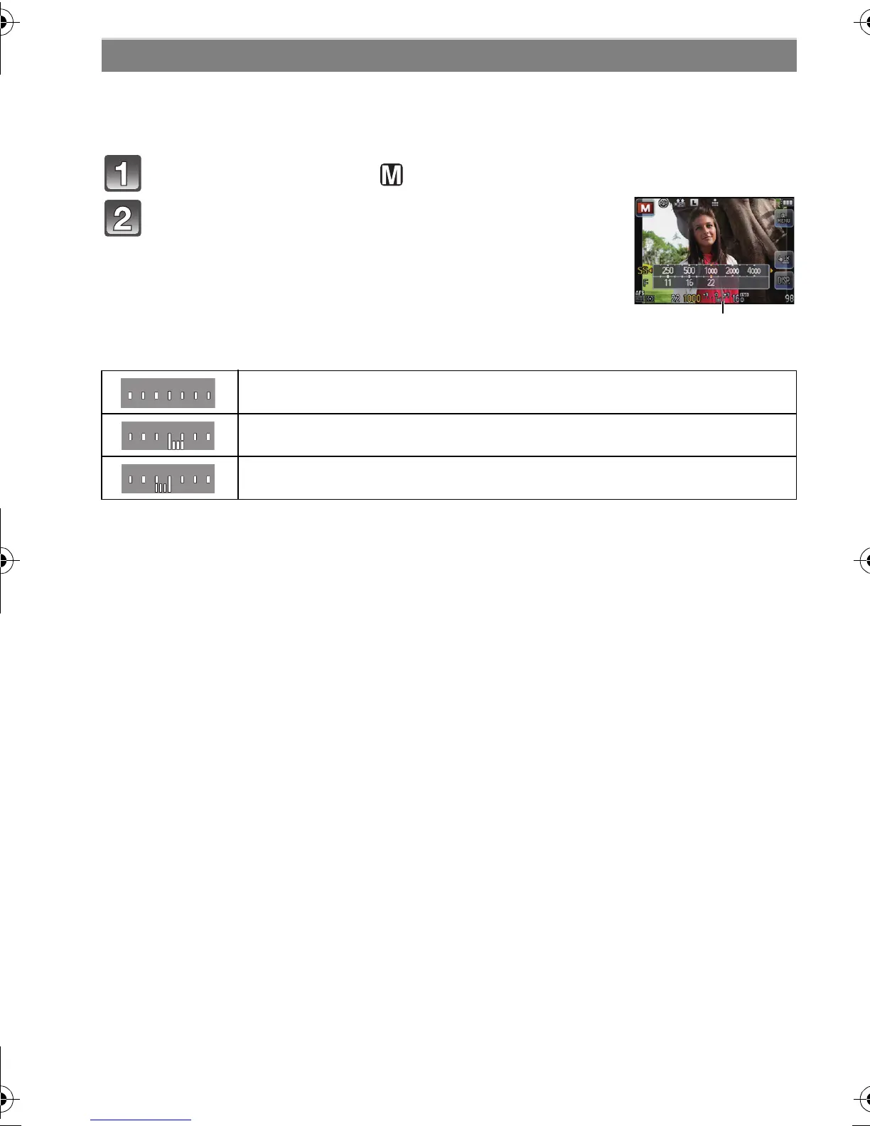 Determine the exposure by manually setting the aperture value and the shutter speed.