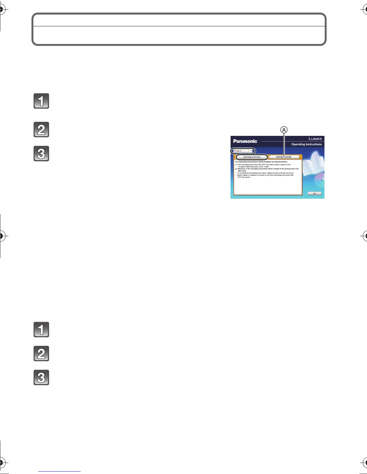 Insert the CD-ROM containing the Operating Instructions (supplied), click A and then