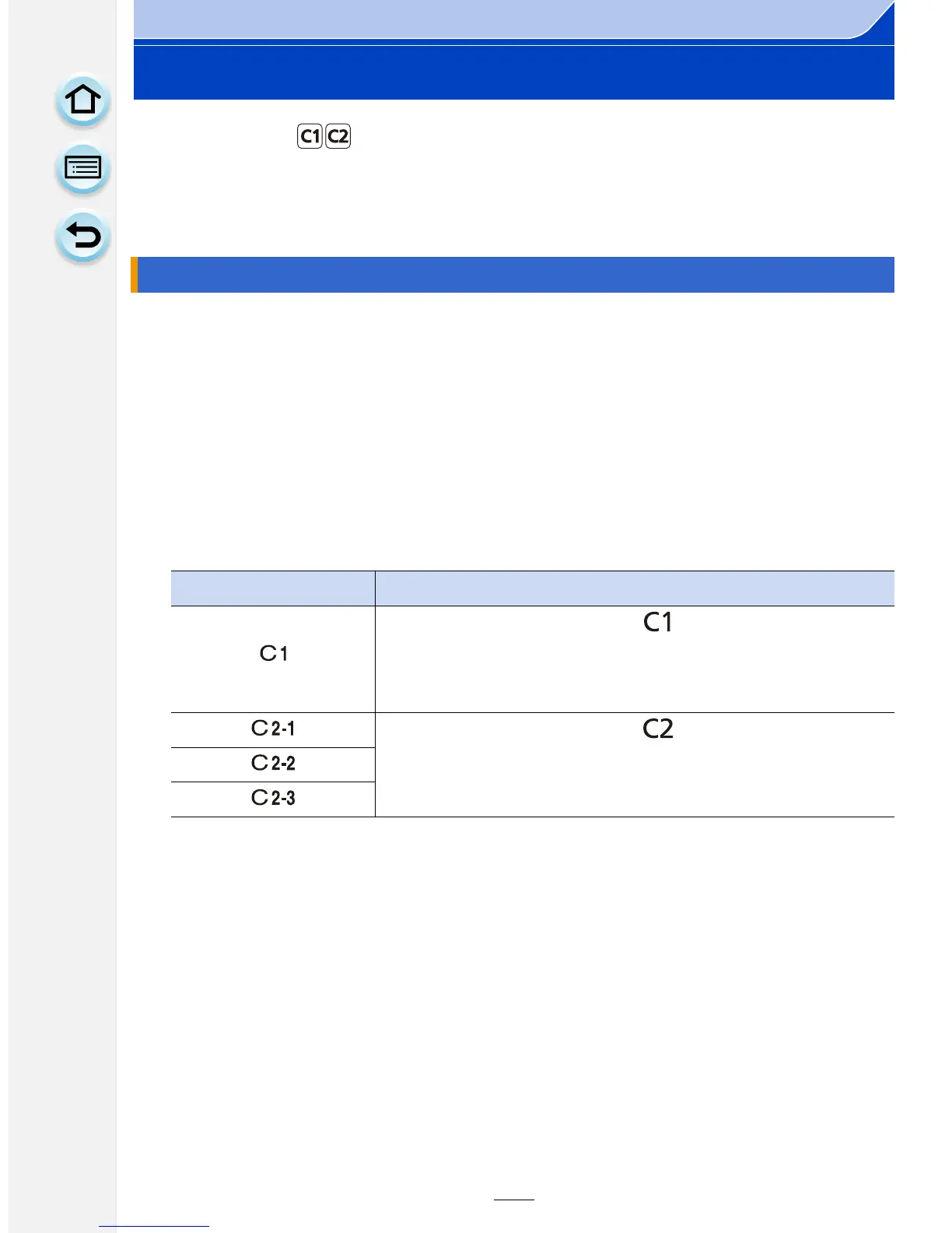 To allow recording using the same settings, up to 4 sets of current camera settings can be