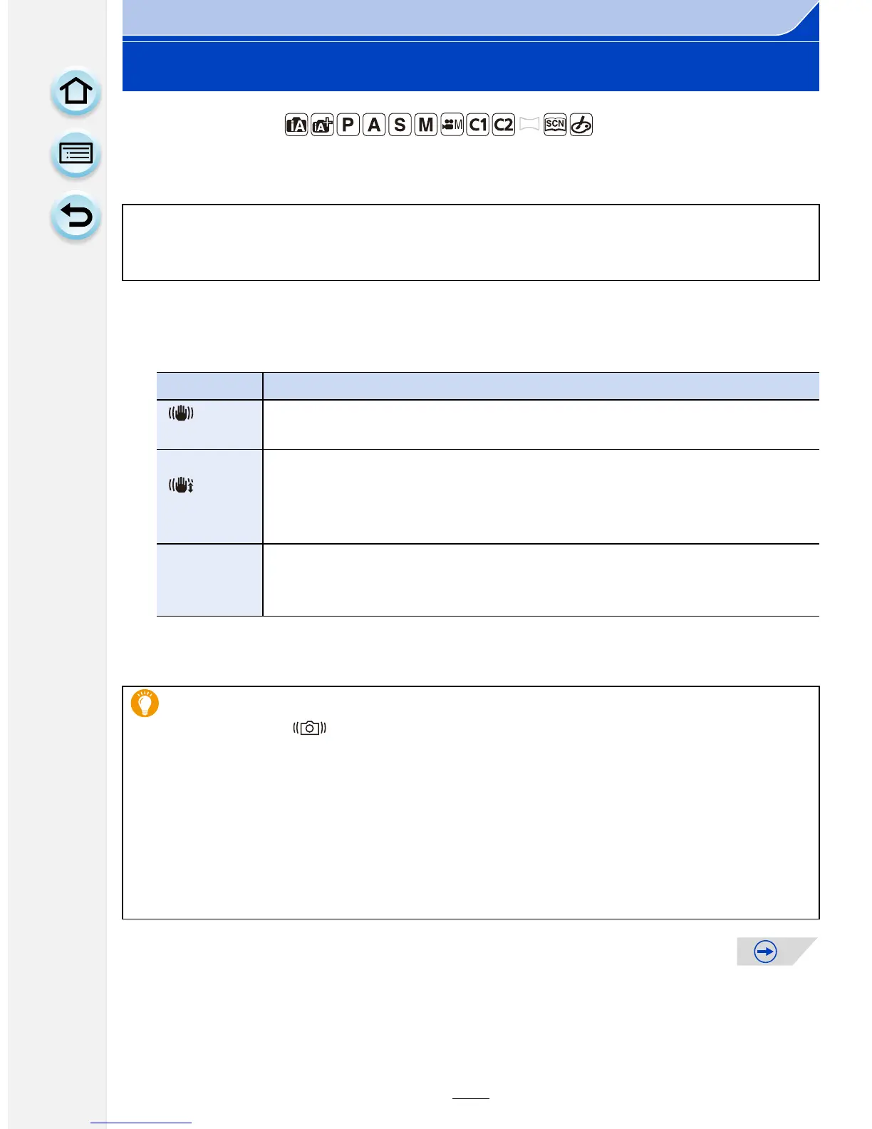 When the jitter alert [ ] appears, use [Stabilizer], a tripod or the self-timer (P170).