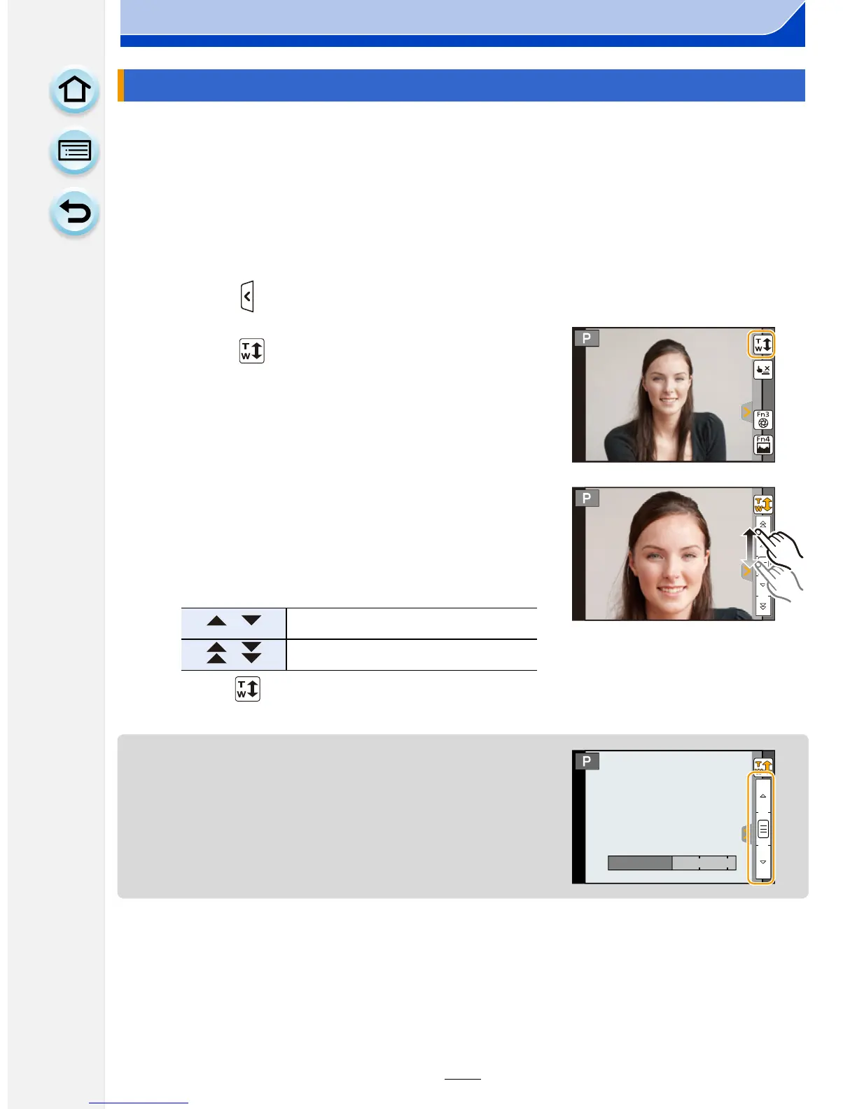 • When [Step Zoom] (P127) is set to [ON], the slide bar for