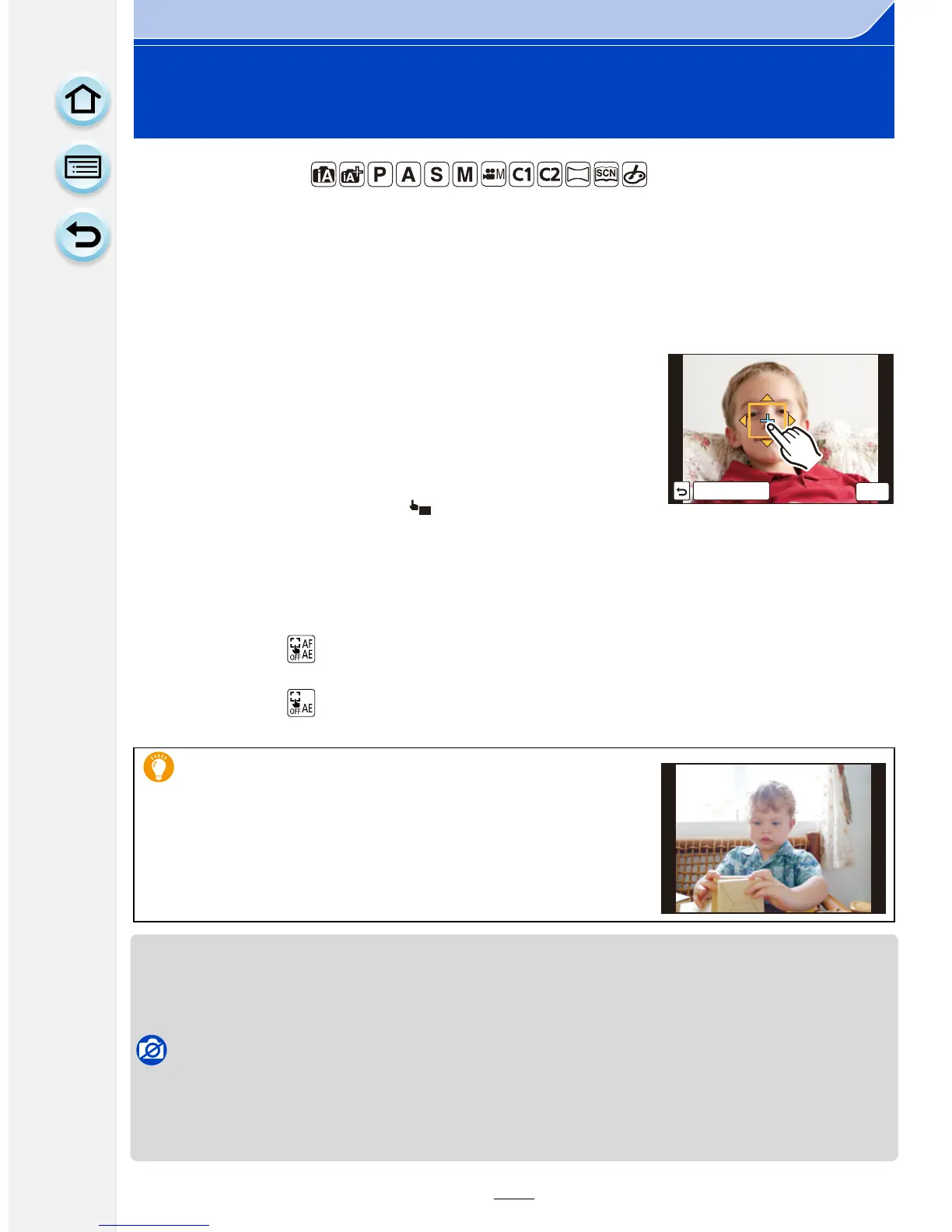 • At the edge of the screen, the metering may be affected by the brightness around the touched