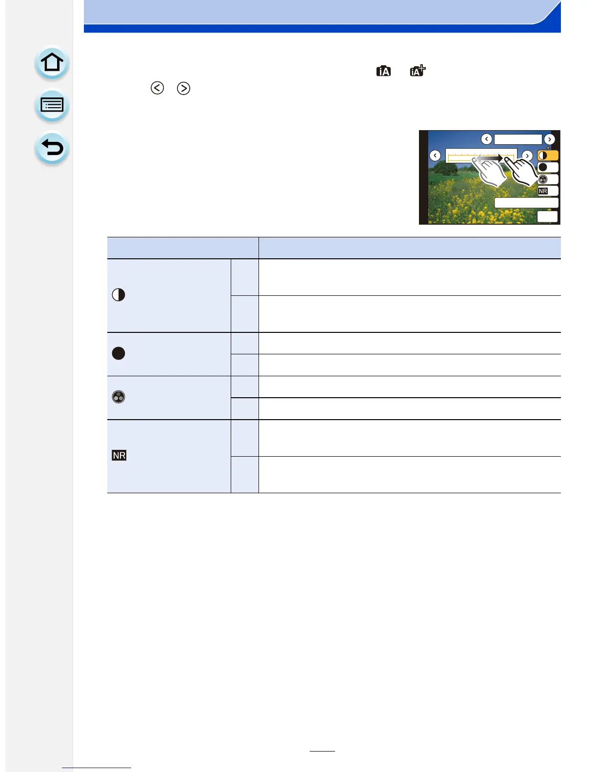 1 Touch [ ]/[ ] to select the type of Photo Style.
