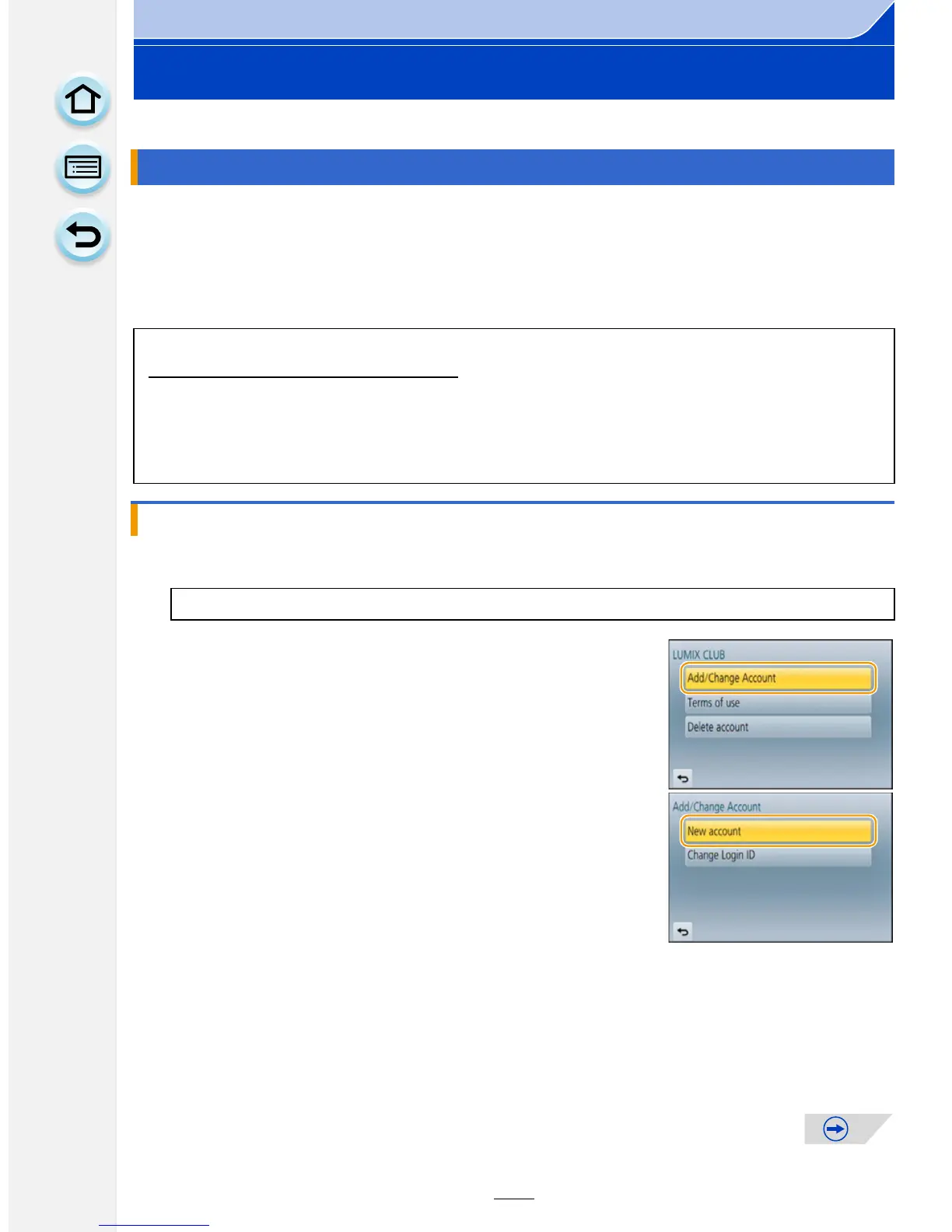 [MENU] > [Setup]>[Wi-Fi]>[Wi-Fi Setup]>[LUMIX CLUB]